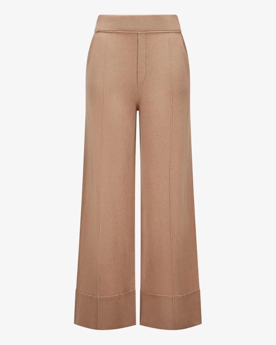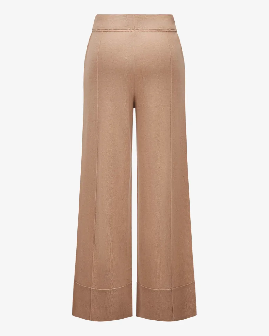 Strickhose für Damen von Allude in Camel. Das weit geschnittene Modell inschlichter Aufmachung besticht dank des hochwertigen Woll-Cashmere-Verarbeitungmit einer besonders angenehmen Haptik und präsentiert sich so als legererFavorit.