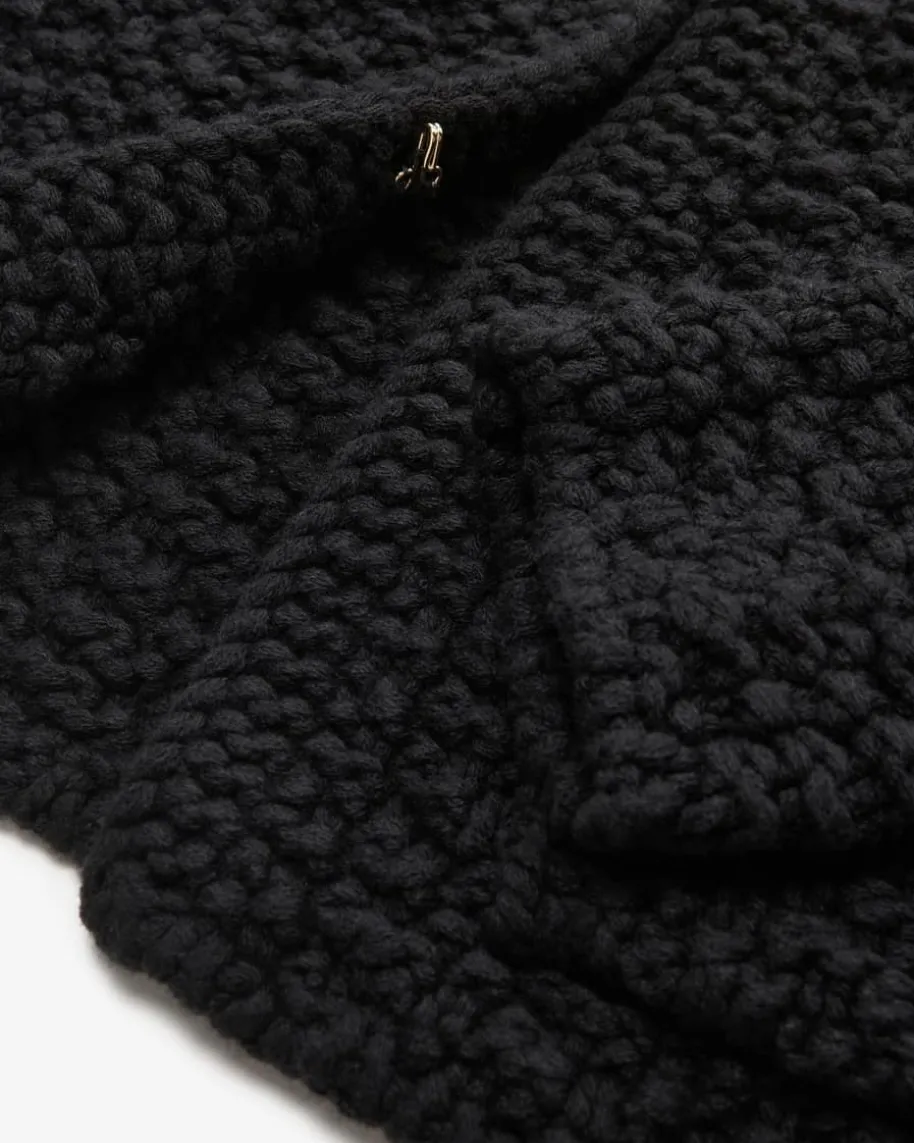 Strickjacke für Damen von Fabiana Filippi in Schwarz. Die italienische Markesteht für moderne Eleganz, hochwertige Materialien und dezente Farbwelten. DasGrobstrick-Modell überzeugt sowohl haptisch als auch optisch mit schweremMerinowolle-Mix, während die markanten goldfarbenen Knöpfe einen eleganten Lookschaffen.