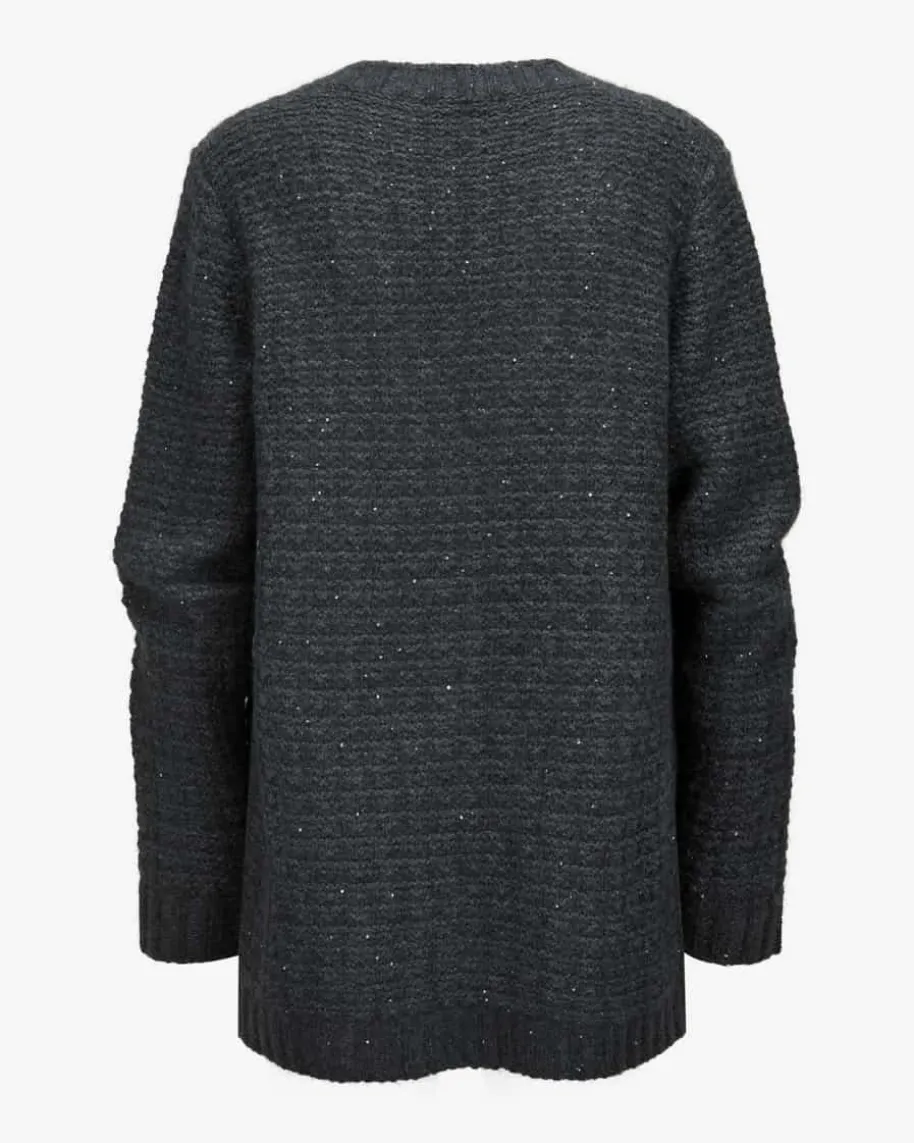 Strickjacke für Damen von Fabiana Filippi in Anthrazit. Das legere, langgeschnittene Modell präsentiert sich in dickem Gitterstrick-Design aus weichemMerinowoll-Seiden-Mix, während die zarten Pailletten-Applikationen einenfemininen Touch verleihen.