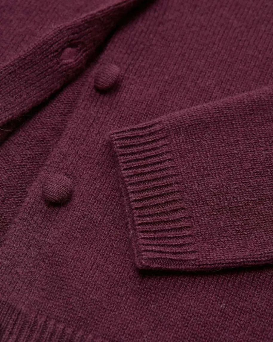 Strickjacke für Damen von Allude in Bordeaux. Das Münchner Label wurde 1993 vonAndrea Karg gegründet und ist bekannt für luxuriöse Strickmode aus edlemCashmere. Auch dieses Modell überzeugt mit edlem Schurwoll-Cashmere-Mix infeiner Strick-Aufmachung, während die applizierten Strickrosen den femininenLook romantisch ergänzen.