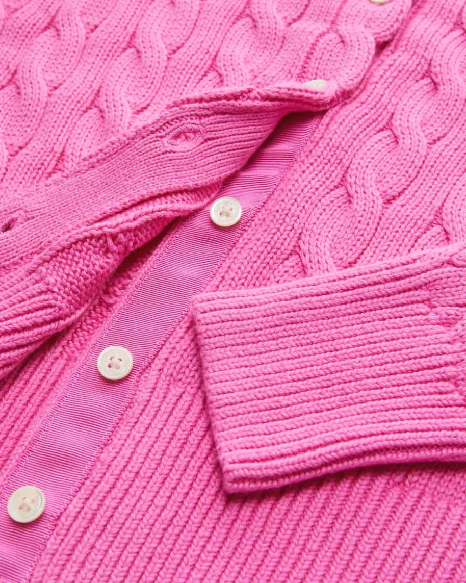 Strickjacke für Damen von Polo Ralph Lauren in Rosa. Das Modell im sportivenHeritage-Look begeistert mit hochwertiger Baumwolle und hohem Tragekomfort.Stilvoll abgerundet wird das Design durch die kontrastierende Logo-Stickerei aufder Brust sowie das klassische Zopf-Strickmuster.