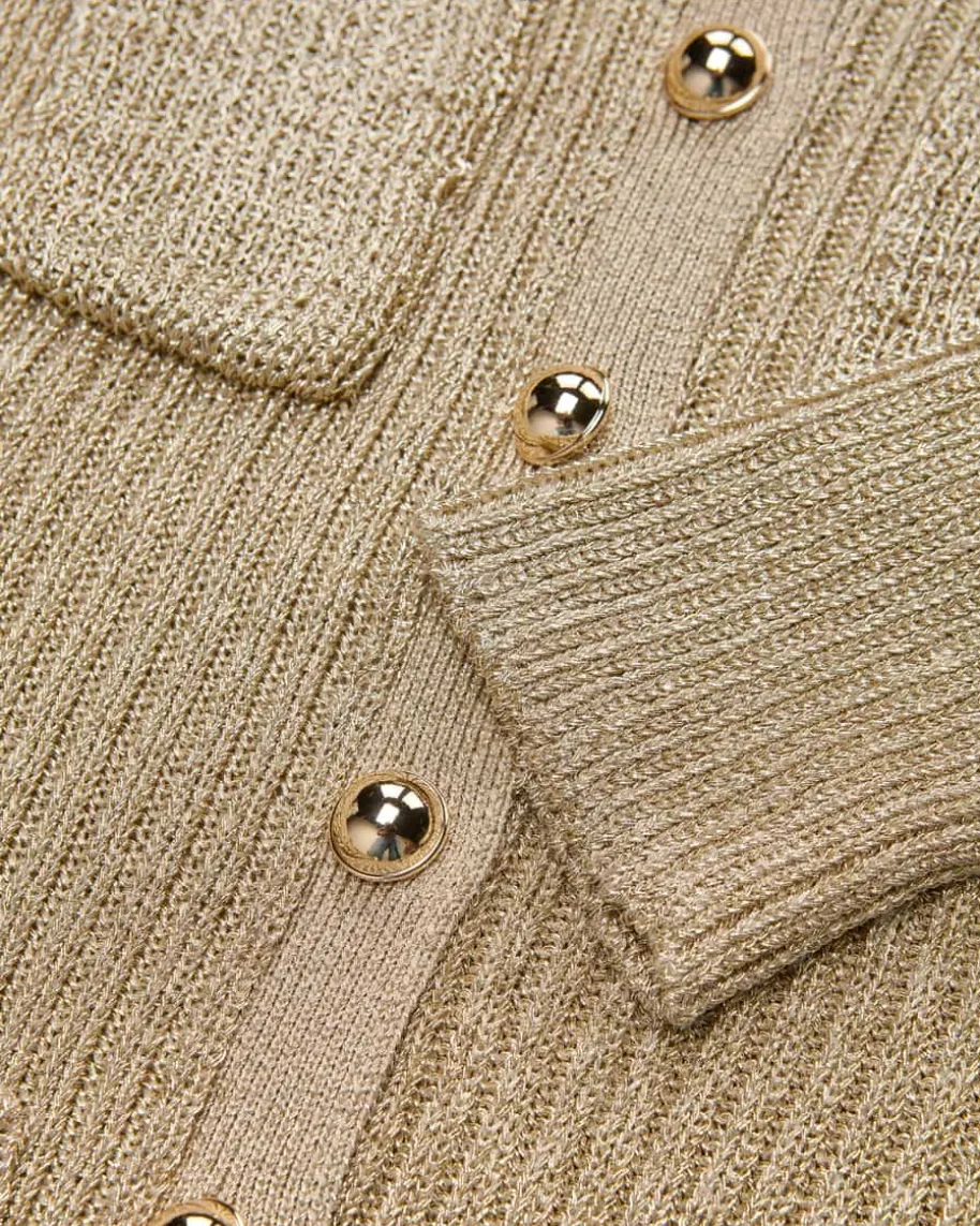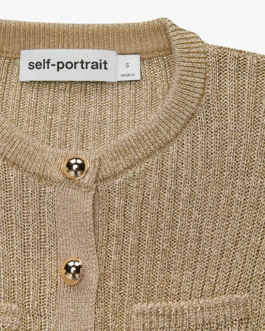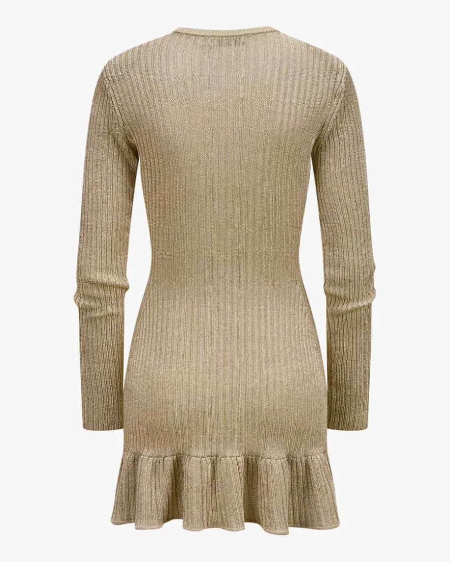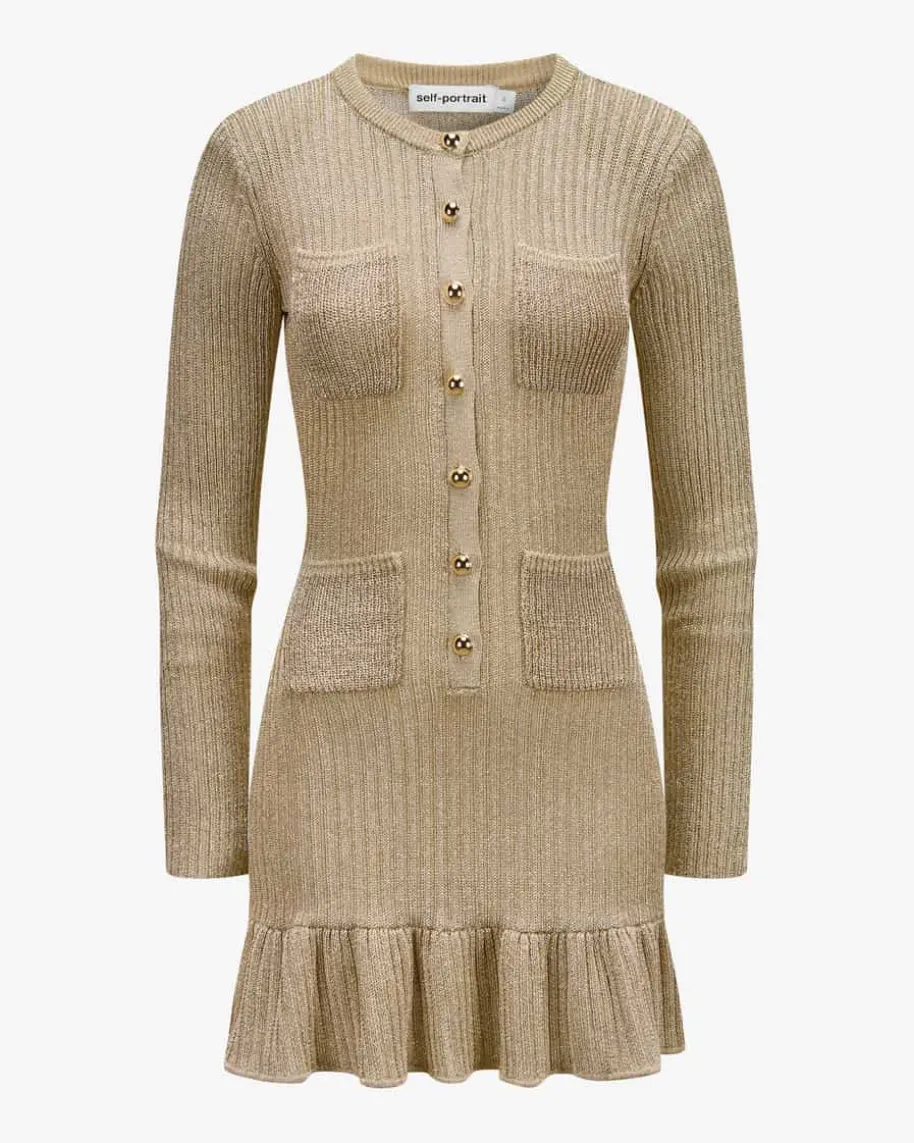 Strickkleid für Damen von Self-Portrait in Gold. Das Londoner Label steht fürmoderne Cocktailkleider mit Spitze, Cut-Outs und femininer Detailverliebtheit.Auch dieses Modell begeistert mit schmaler Rippstrick-Verarbeitung mit edelchangierenden Glitzerfasern, während der Rüschensaum am Rock und klassischeDetails den femininen Hingucker-Look gekonnt abrunden.