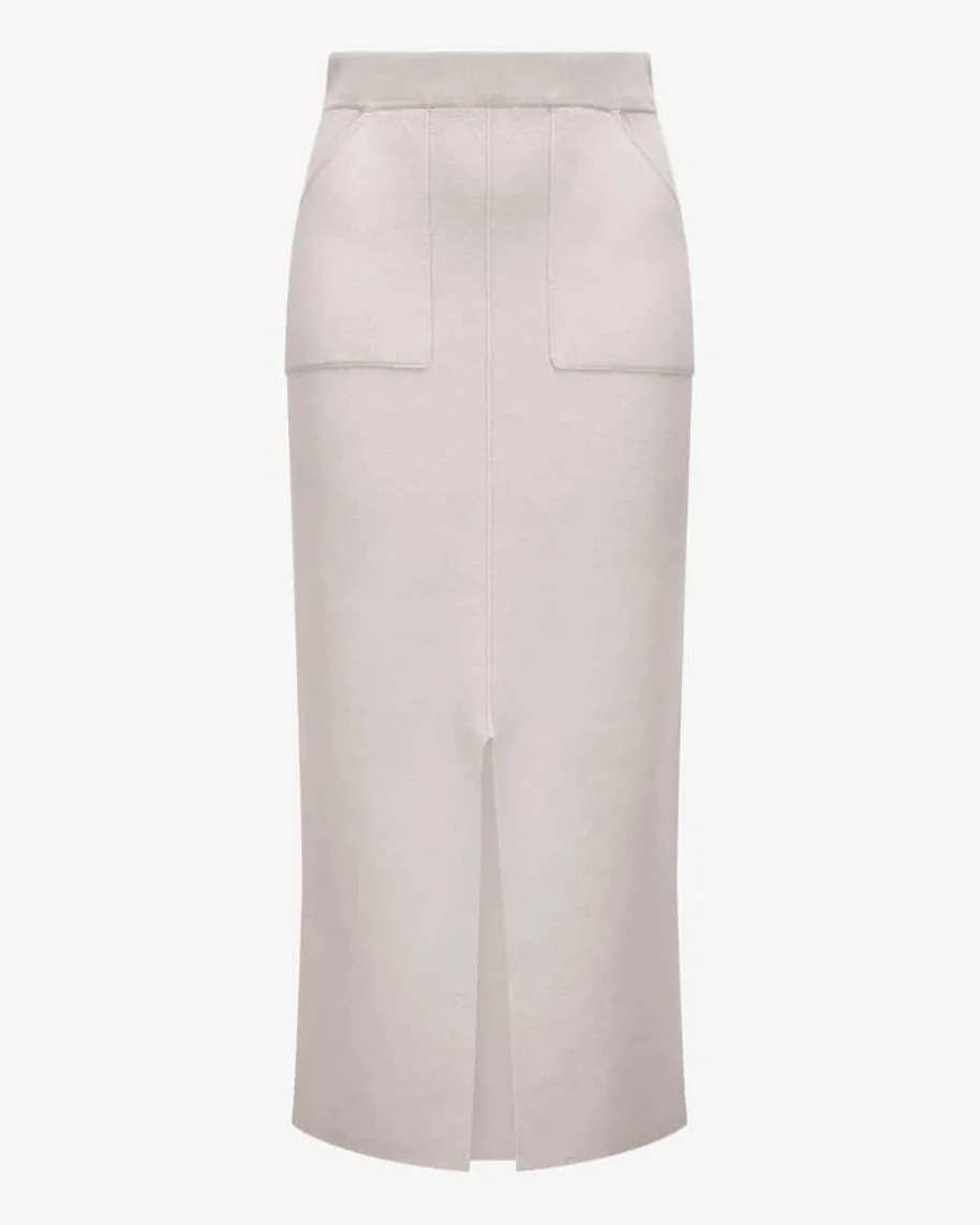 Strickrock für Damen von Allude in Beige. Das Münchner Label wurde 1993 vonAndrea Karg gegründet und ist bekannt für luxuriöse Strickmode aus edlemCashmere. Auch dieses Modell überzeugt mit edlem Schurwoll-Cashmere-Mix infeiner Strick-Aufmachung, während die cleane Aufmachung und der mittige Schlitzeinen eleganten und femininen Look verleihen.