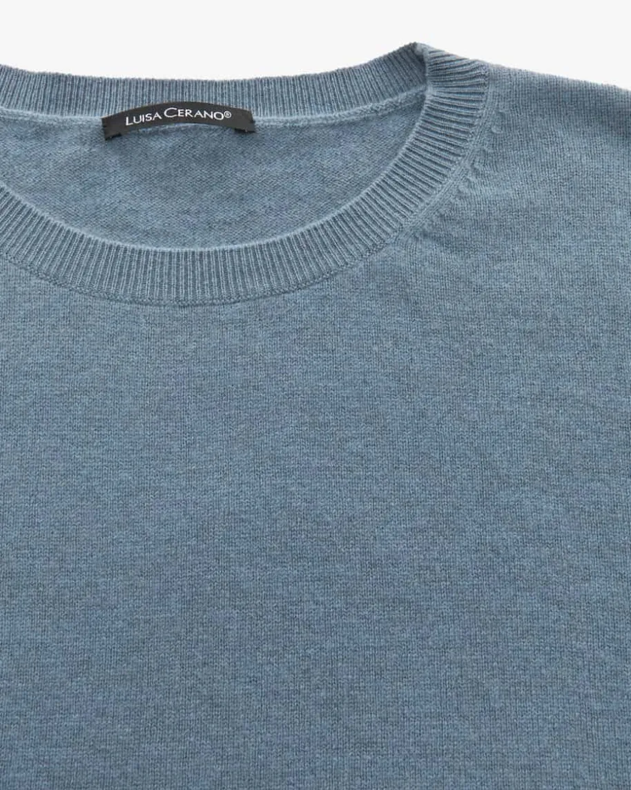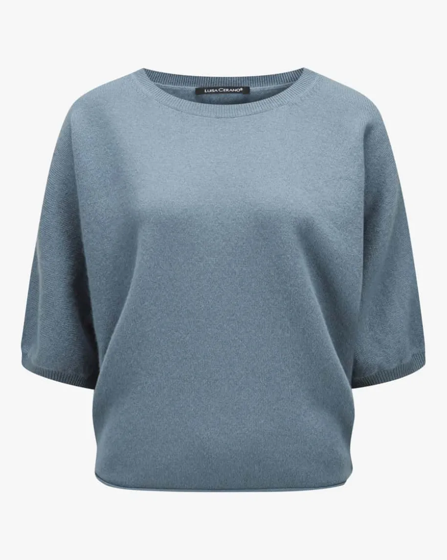 Strickshirt für Damen von Luisa Cerano in Blaugrau. Das legere Modellpräsentiert sich mit weiter Schnittführung und verkürzten Fledermausärmeln,während die hochwertige Woll-Cashmere-Verarbeitung für haptische Highlightssorgt.