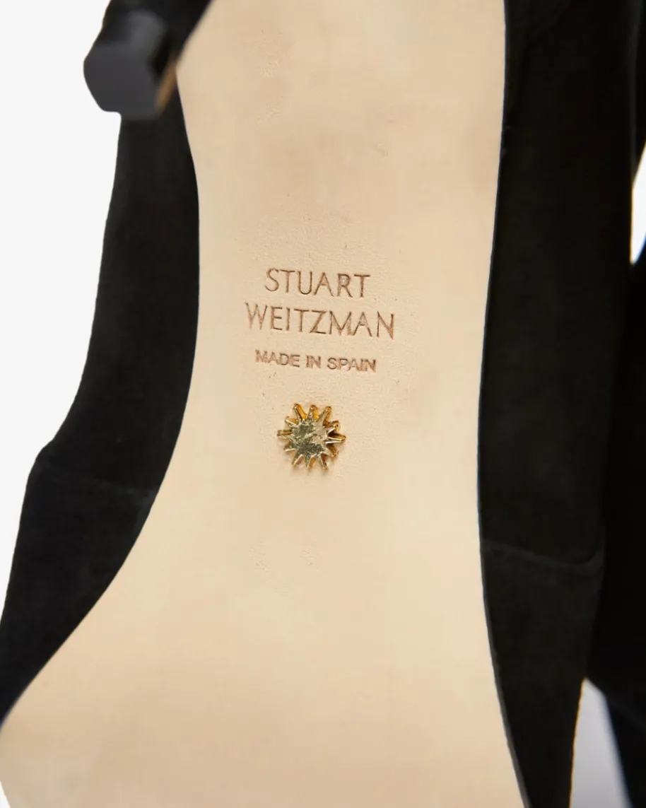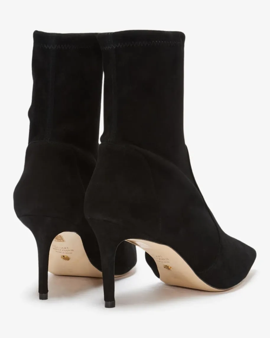 Stuart 75 Stretch Stiefeletten für Damen von Stuart Weitzman in Schwarz. DiesesModell präsentiert sich in femininer Eleganz, welche die hochwertigeVeloursleder-Qualität und spitze Form gekonnt unterstreicht.