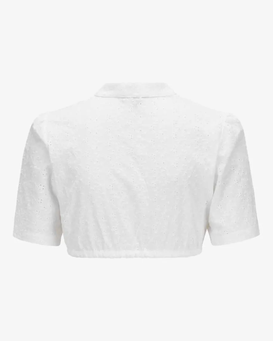 Suri Dirndlbluse für Damen von Kinga Mathe in Weiß. Das semi- transparenteModell präsentiert sich dank des Lochmusters als modischer Begleiter für IhrenTrachten-Look, während der dezente Stehkragen einen modischen Hingucker kreiert.