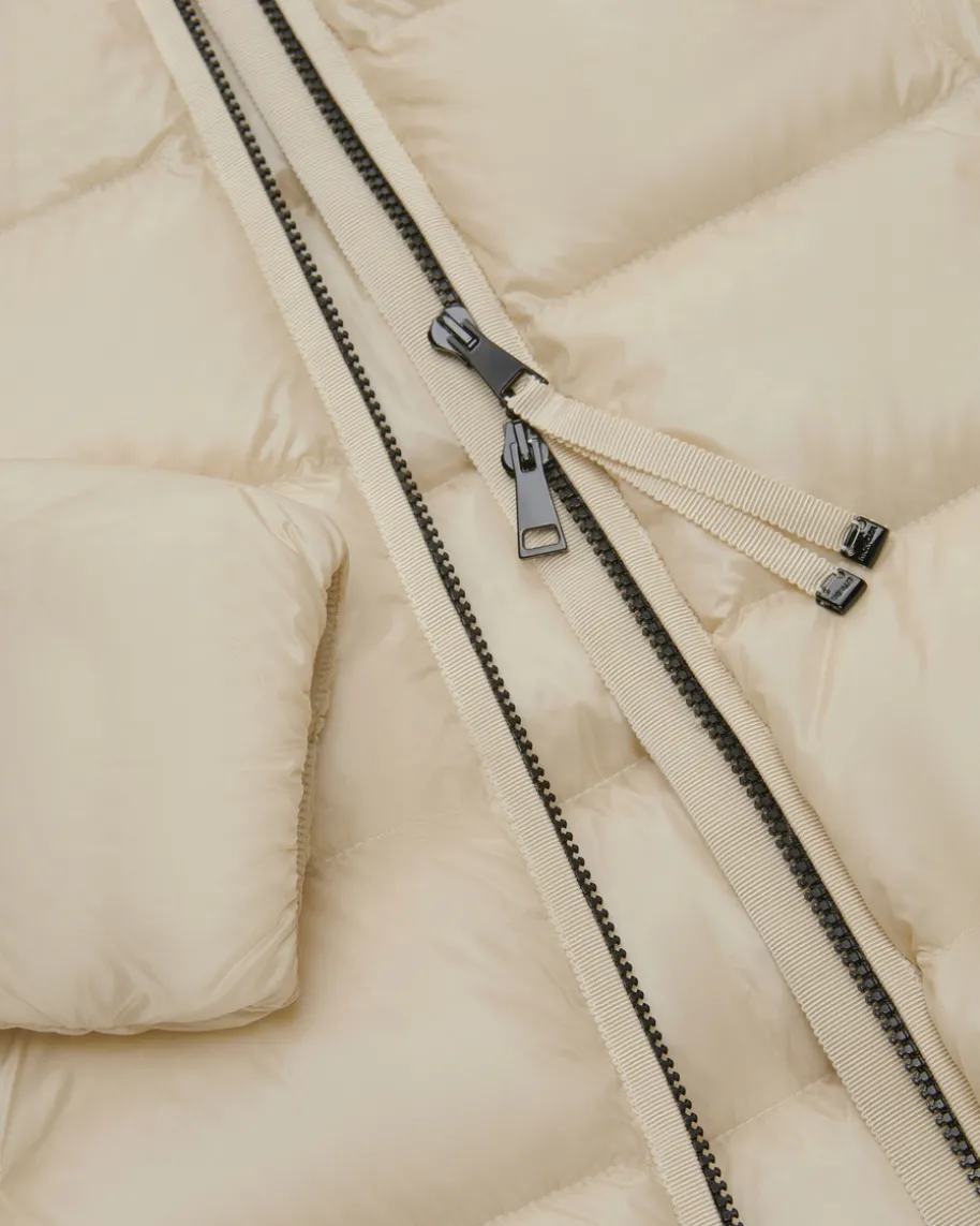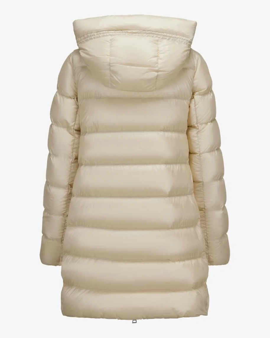 Suyenne Daunenmantel für Damen von Moncler in Creme. Denkt man an hochwertige,warme Daunenjacken, kommt einem unweigerlich das italienische TraditionslabelMoncler in den Sinn. Auch mit diesem Modell präsentiert das Label dank derhochwertigen Daunen-Feder-Füllung einen perfekten Begleiter für vielseitigeWinter-Looks, welcher durch das voluminöse Steppmuster und das dezentchangierende Material gekonnt in Szene gesetzt wird.