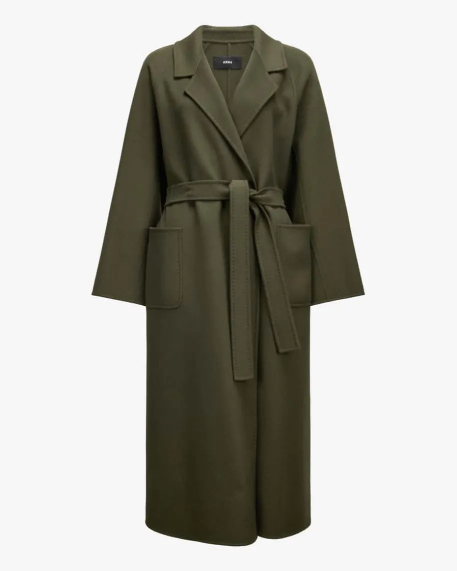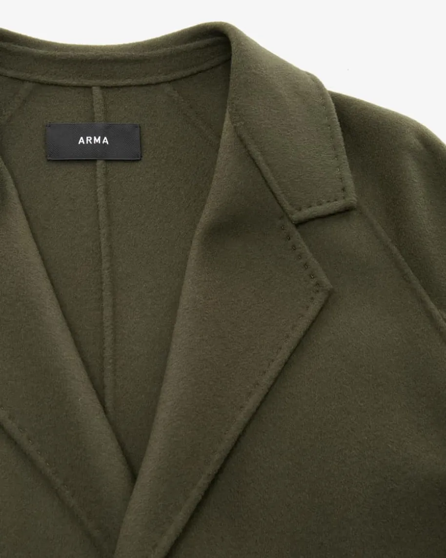Suza Wollmantel für Damen von Arma in Dunkelgrün. Ein herbstlicher Allrounder -Das Modell überzeugt dank der hochwertigen Woll-Qualität mit angenehmemTragekomfort, während klassische Details und das abnehmbare Taillenband dasGesamtbild stilvoll vollenden.