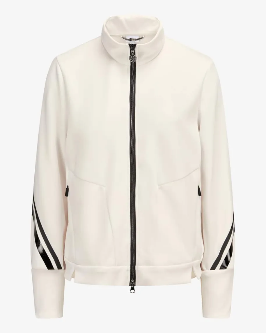 Sweatjacke für Damen von Sportalm Emotion in Puder. Das Modell in modischerPassform und besonderem Dessin, überzeugt mit angenehmer Haptik, während derStreifen-Print den Gesamtlook sportiv abrundet.
