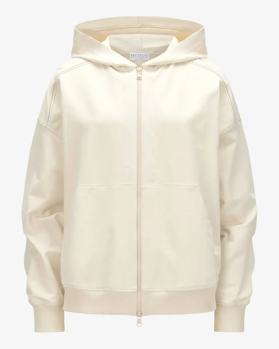 Sweatjacke für Damen von Brunello Cucinelli in Creme. Das legere Modell zeichnetsich durch die Verwendung von angenehmem Baumwoll-Sweat aus, während dielabeltypische Ketten-Applikation dem sonst sportiven Design einen HauchRaffinesse verleiht.