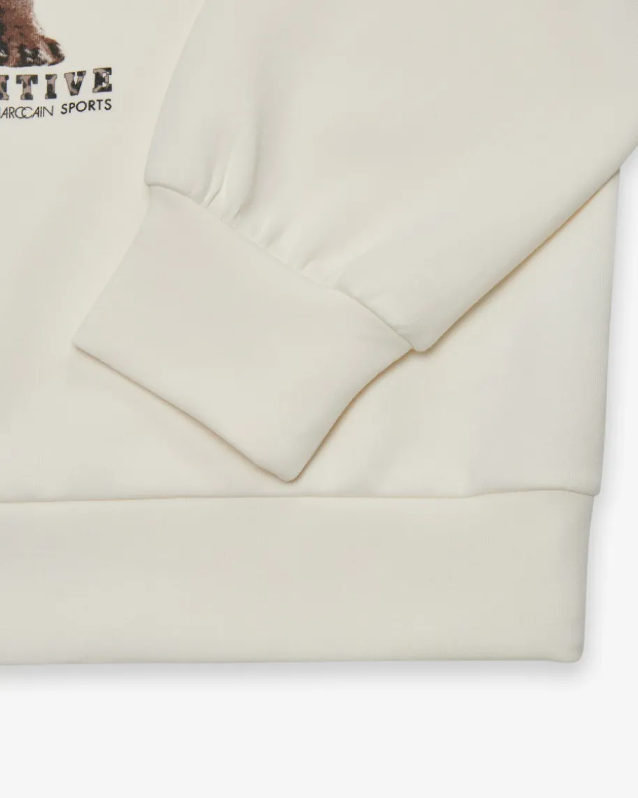 Sweatshirt für Damen von Marc Cain in Ecru und Dunkelbraun. Die deutsche Markesteht für selbstbewusste, feminine Looks. Auch dieses Modell präsentiert sichmit legerer Silhouette, während der modische Hunde-Print mit edel changierendenGlitzersteinen einen stilvollen Favoriten kreiert.