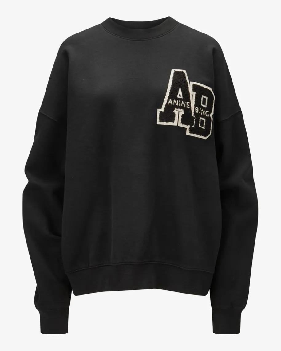 Sweatshirt für Damen von Anine Bing in Schwarz. Das Oversize-Modell zeichnetsich besonders durch seine softe Baumwoll-Qualität mit weicher Innenseite aus,wodurch ein legerer Look entsteht. Die markante Logo-Applikation im College-Style setzt zusätzlich labeltypische Akzente.
