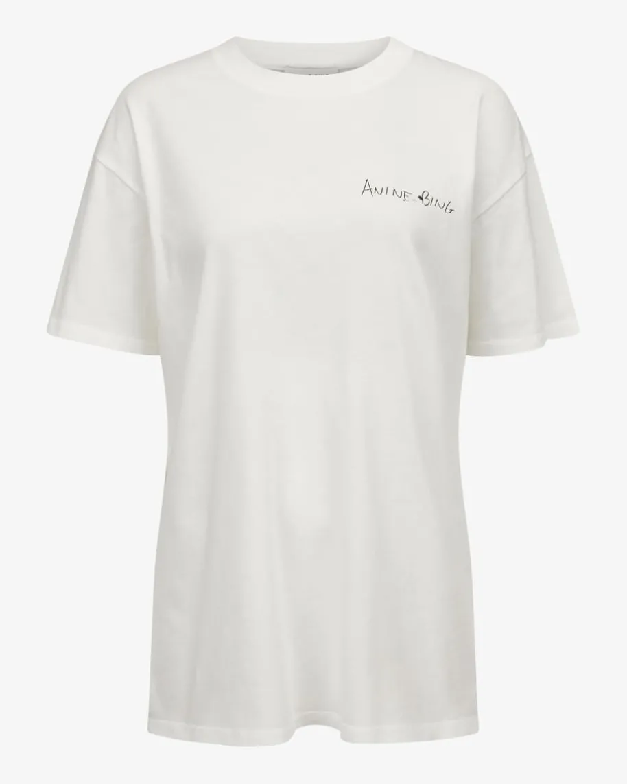 T-Shirt für Damen von Anine Bing in Weiß und Schwarz. Dieses Modell garantiertdank der weiten Passform und dem minimalistischem Schriftzug-Print einenmodischen Look und sorgt dank leichter Baumwoll-Qualität für angenehmeTragemomente.