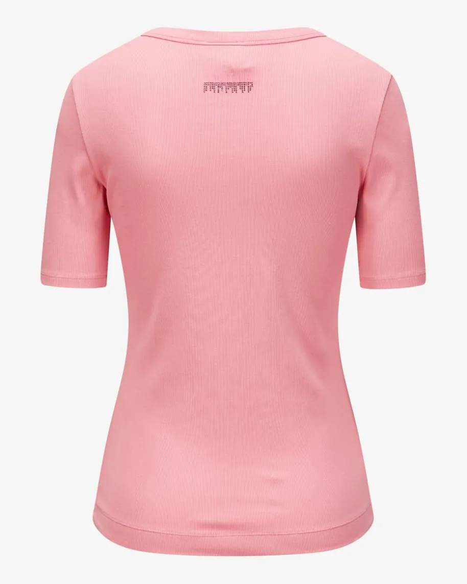 T-Shirt für Damen von Sportalm Emotion in Pink. Das Modell überzeugt mitangenehmer Rippstrick-Qualität, die zusammen mit dem cleanen Design einenmodischen Look kreiert. Die schmale Passform sorgt zudem für eine feminineSilhouette.
