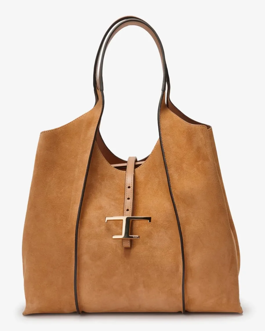 T Timeless Shopper für Damen von Tod’s in Camel. Das Modell aus hochwertiggenarbtem Leder besticht zusammen mit dem ikonischen logogeprägten T Timeless-Metallanhänger in schlichter Eleganz, während das geräumige Hauptfach sowie dasherausnehmbare Necessaire genug Stauraum für all Ihre Alltags-Essentials bietet.