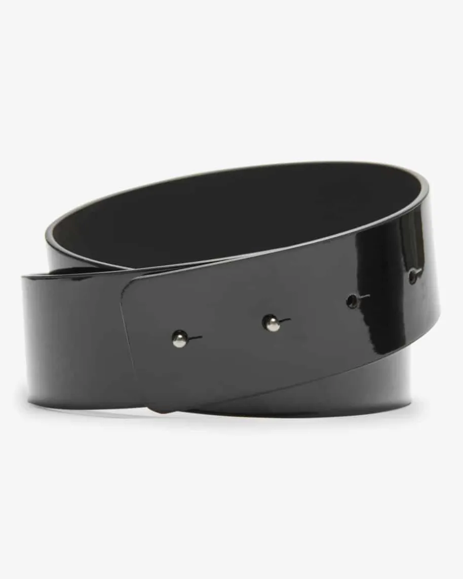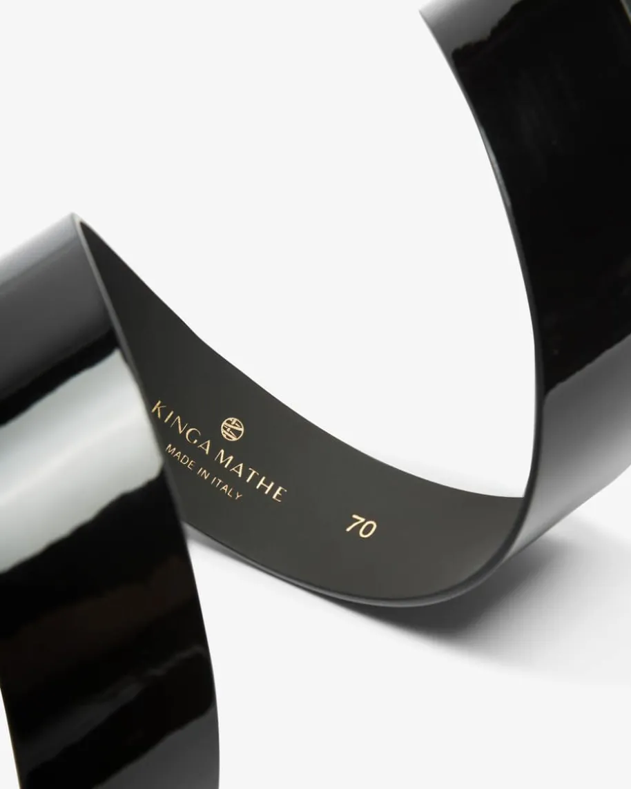 Taillengürtel für Damen von Kinga Mathe in Schwarz. Das Modell präsentiert sichin changierender Aufmachung und cleaner Optik – Ein perfektes Accessoire fürihren Trachtenlook.