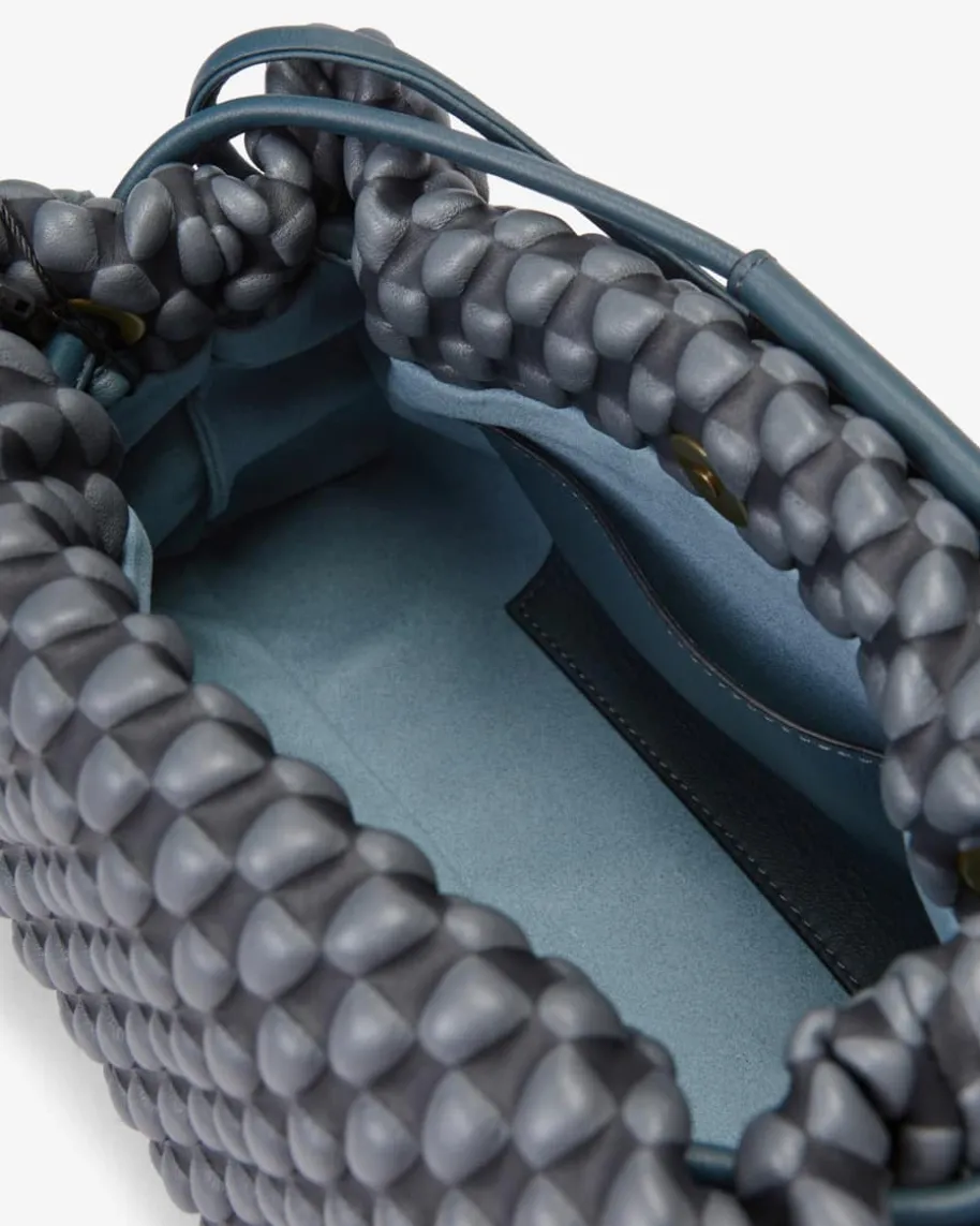 Tango Umhängetasche von Tissa Fontaneda in Rauchblau. Das 2010 gegründete Labelvereint Handwerkliches Können und Liebe zum Detail. Die sofort erkennbare„Bubble Bag“ ist zum Markenzeichen der Kollektion Tissa Fontaneda geworden.Auch dieses Modell begeistert in charakteristischer Aufmachung mitstrukturierter Optik, während die Quasten-Applikation den letzten Schliffverleiht.