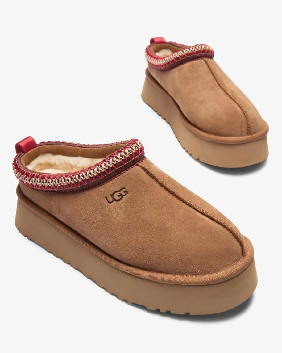Tazz II Pantoletten für Damen von Ugg in Hellbraun. Das Modell des Kult-Labelsüberzeugt dank des weichen Lammfell-Futters mit hohem Wohlfühl-Faktor, währenddas hochwertige Veloursleder ein zeitloses Design kreiert. Zusätzlich rundet dastasmanische Flecht-Detail den Schuh modisch ab.