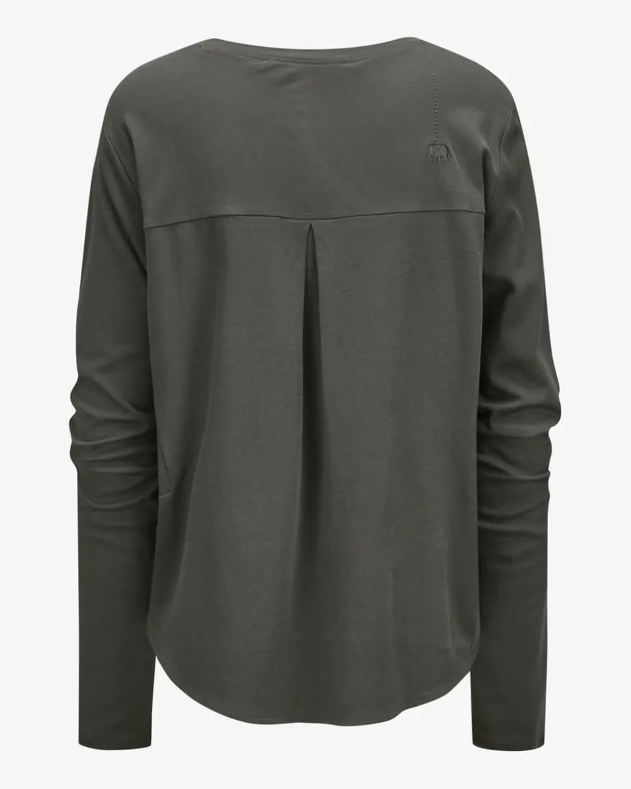 Tenja Sweatshirt für Damen von Love Joy Victory in Dunkelgrau. Das Modellpunktet dank der hochwertigen Bio-Baumwolle mit einer angenehmen Haptik, währenddas schlichte Design durch akzentuierende Logo-Details abgerundet wird.
