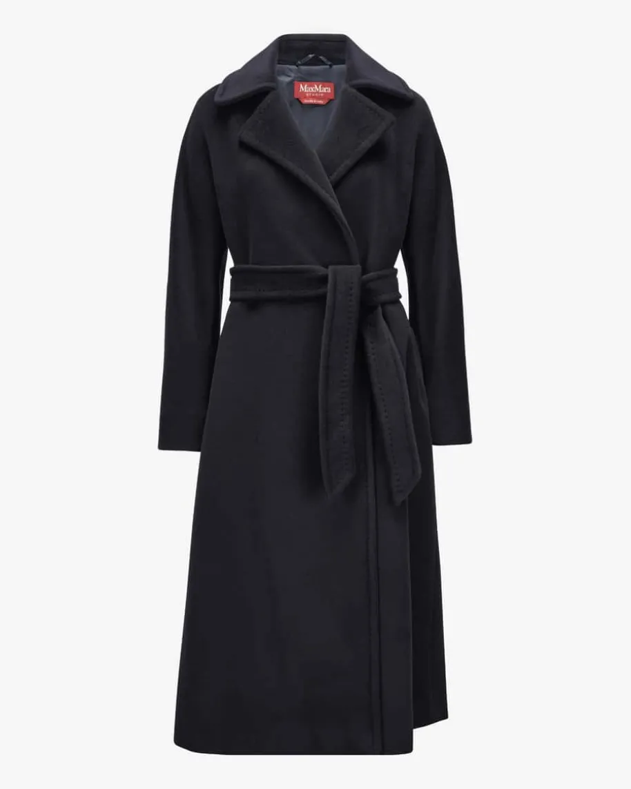 Tenzone Wollmantel für Damen von Max Mara Studio in Nachtblau. Weiblich, modern,tragbar – Max Maras femininere Linie. Auch dieses Modell aus hochwertigem PureNew Wool Schurwolle, überzeugt mit angenehmen Tragemomenten, während dasklassische Design den zeitlosen Look harmonisch abrundet.
