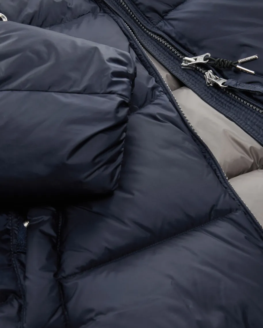 Tilly Daunenjacke für Damen von Parajumpers in Navy. Inspiriert von den mutigenParajumpers, die unter extremen Umständen Rettungsoperationen und Bergungenausführen müssen, entstand die Philosophie des italienischen Labels Outdoor-Modezu entwerfen, die robust und zeitlos, aber auch modern und stilvoll ist. DiesesModell präsentiert sich als sportiver Begleiter an kalten Tagen.
