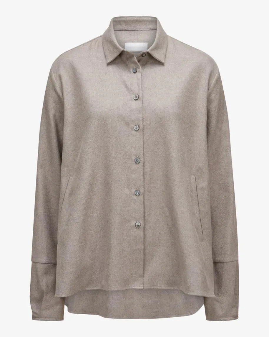 Tiny Flanellbluse für Damen von Robert Friedman in Taupe. Das Label steht fürhochwertige Blusen und Hemden – italienische Stoffe, deutsche Passform,internationale Klasse. Auch dieses Modell überzeugt mit weicher Flanell-Baumwolle und angenehmen Tragemomenten, während die weite Passform mitSchubtaschen einen modischen Begleiter für vielseitige Looks schafft.