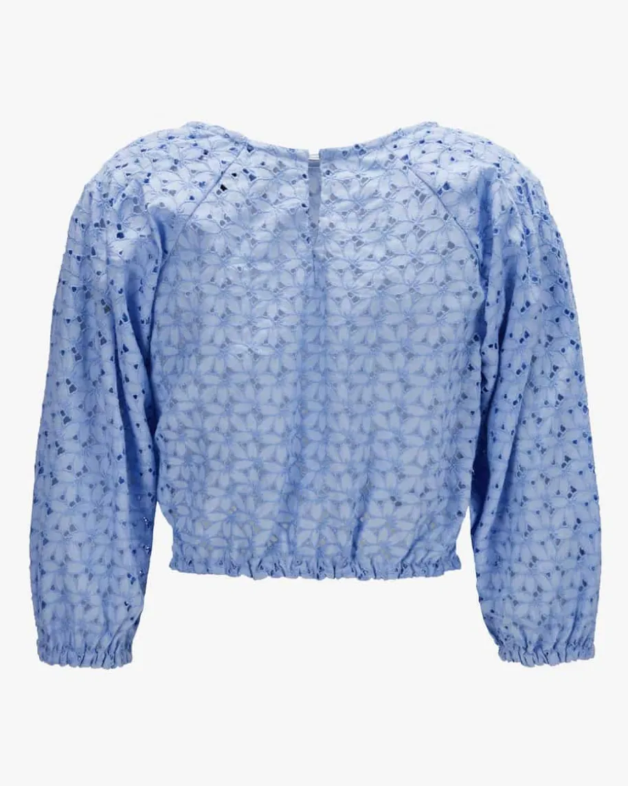 Top Kinga Bluse für Damen von Kinga Mathe in Blau. Das verkürzte Modell bestichtdank desraffinierten Lochmusters in moderner Aufmachung, während die elastischenBündchen für den perfekten Sitz garantieren.