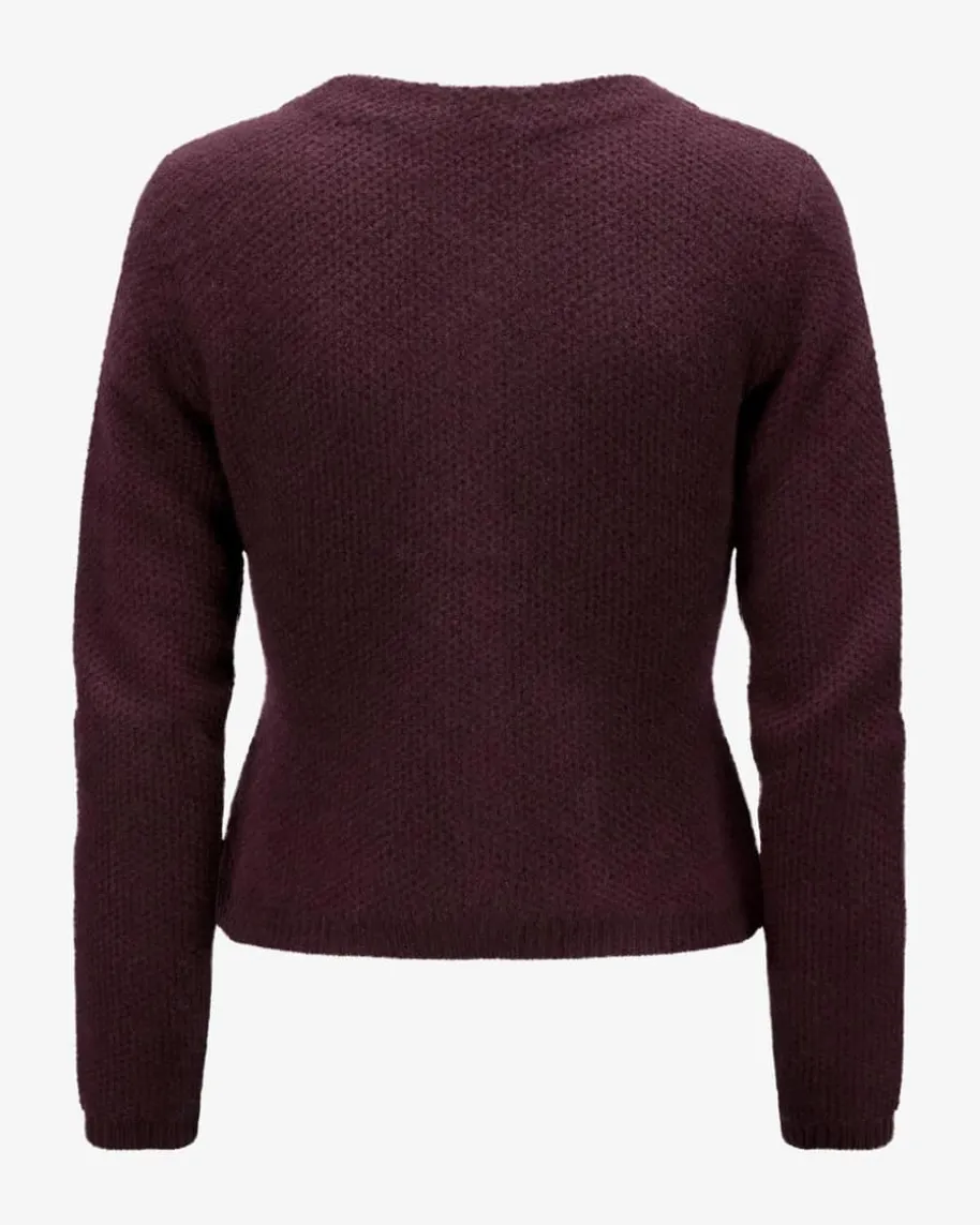 Trachten-Cashmere-Strickjacke für Damen von LODENFREY München 1842 in Bordeaux.Tradition und Moderne in perfektem Zusammenspiel – Das Modellbegeistert durch die klassische Linksstrick-Qualität, während Schmuckstein-Knöpfe den Trachten-Look charmant abrunden.