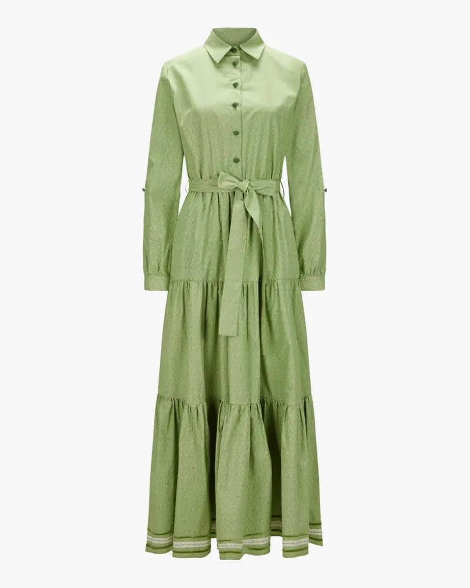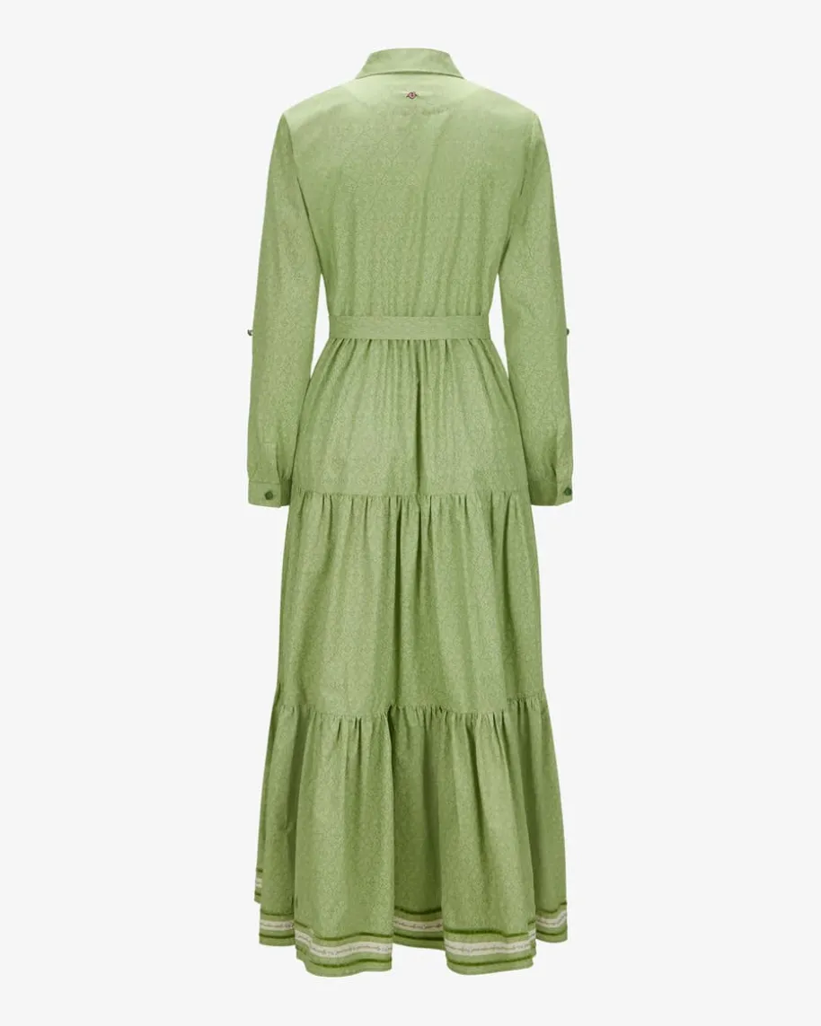 Trachten-Hemdblusenkleid für Damen von Lotta Love in Grün. Einzigartig undfeminine – liebevoll verziert mit Bändern, abgerundet durch versteckte Taschenfür den lässigen, aber glanzvollen Auftritt. Das Modell aus angenehmer Baumwollepräsentiert sich dank filigranem Allover-Dessin in stilvoller Aufmachung,während der modische Stufen-Rock sowie die raffinierten Zierborten dasGesamtbild gekonnt abrunden.