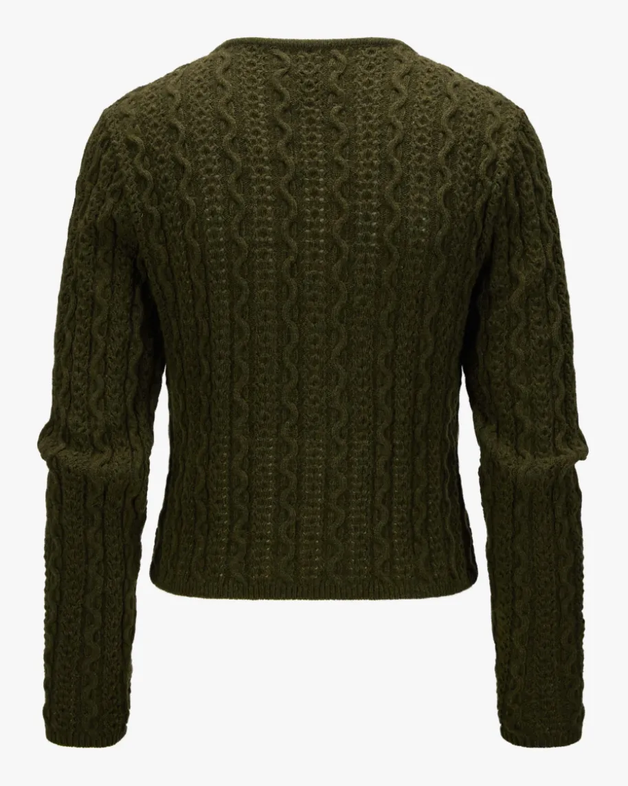 Trachten-Strickjacke für Damen von Edelweiß in Dunkeloliv. Das klassischeStrick-Muster sowie Münz-Knöpfe mit Ketten-Details untermalen dietraditionelle Aufmachung des Modells, während die hochwertige Schurwoll-Qualitätdas Gesamtbild gekonnt vollendet.