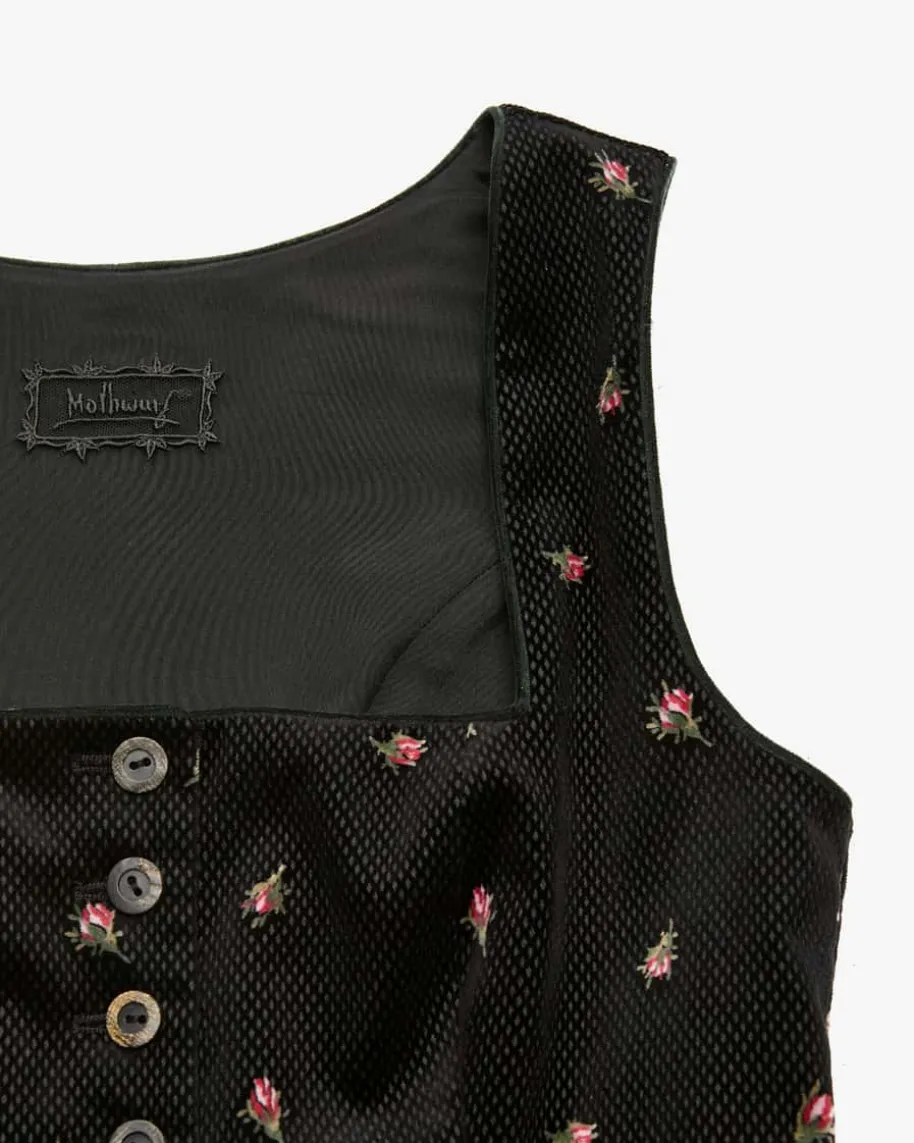 Trachtenkleid für Damen von Mothwurf in Schwarz und Dunkelgrün. Das Modellpräsentiert sich dank des floralen Allover-Dessins sowie der ausgestelltenPassform in femininer Aufmachung, während die weiche Baumwoll-Qualität einangenehmes Tragegefühl verspricht.