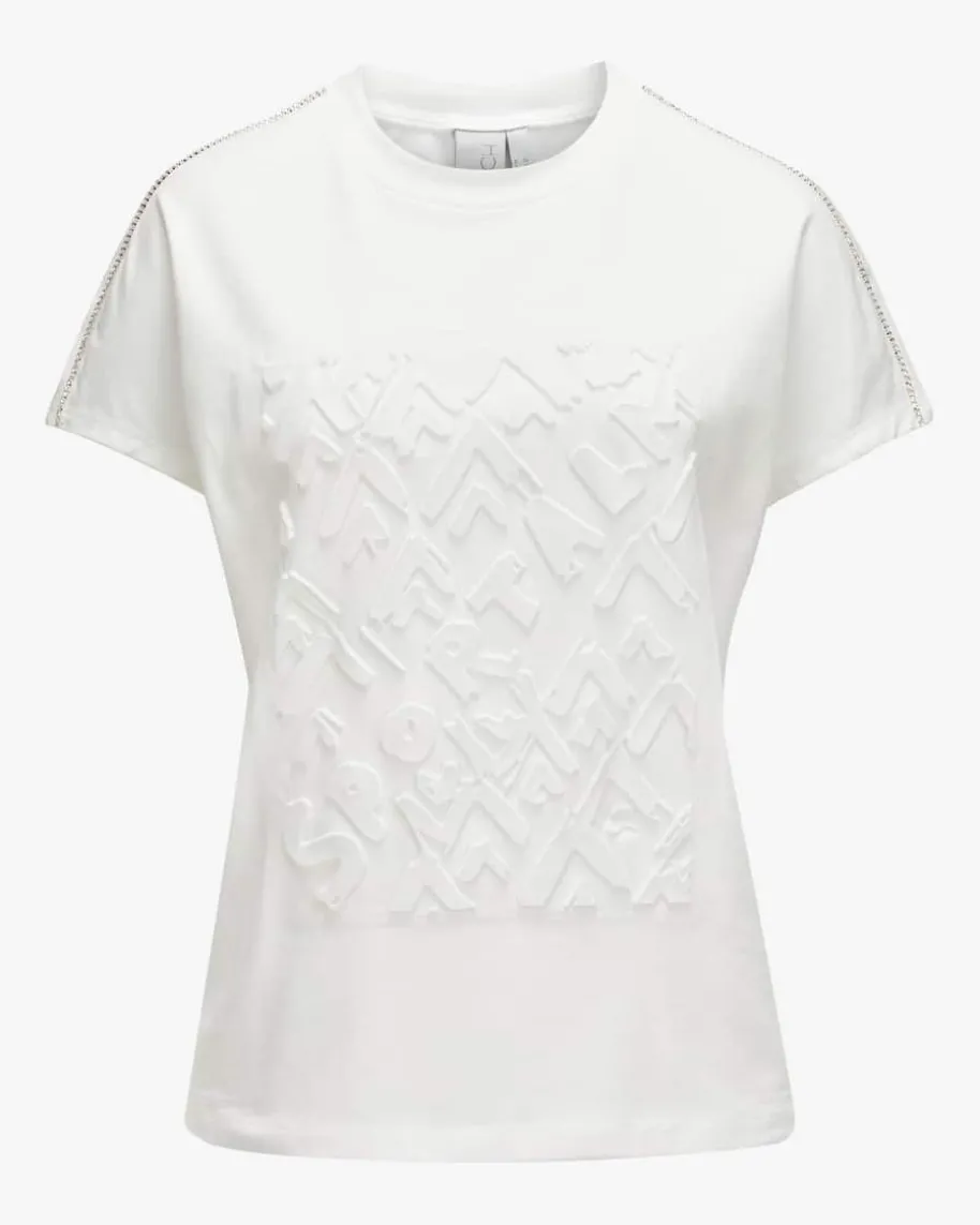 Ulli Ehrlich T-Shirt für Damen von Sportalm in Weiß. Das Modell überzeugt mitangenehmer Jersey-Qualität und angedeuteten Ärmeln, während der Strassstein-Besatz in Kombination mit den erhabenen Logo-Details in 3-D-Optik einen modernenLook mit sportivem Touch kreiert.