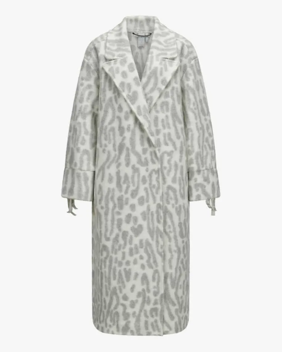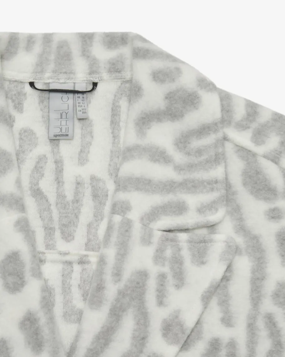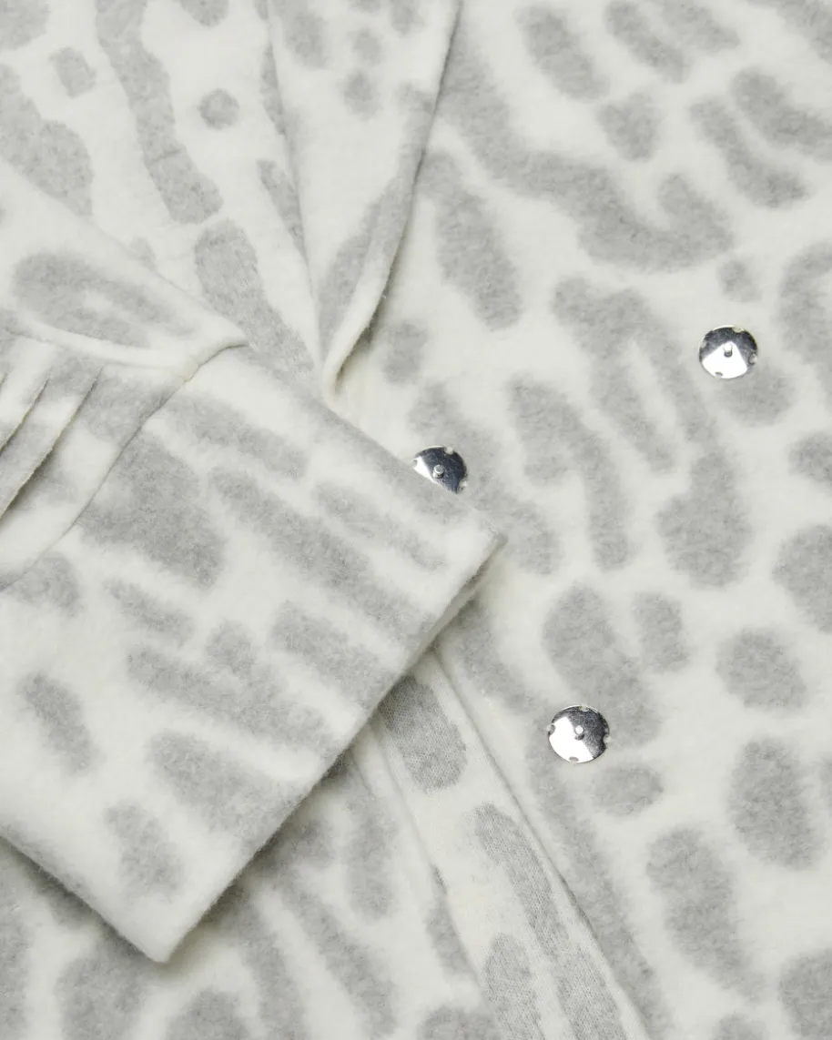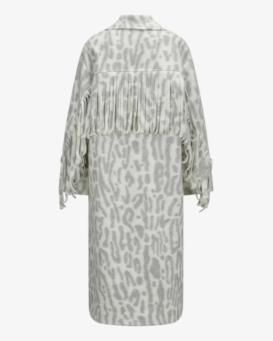 Ulli Ehrlich Wollmantel für Damen von Sportalm Emotion in Weiß und Grau. DasModell zeichnet sich durch den weichen Woll-Mix aus, während die weiteSilhouette mit versetzter Druckknopfleiste ein modisch-legeres Gesamtbildkreiert. Die Fransen-Details sorgen zudem zusammen mit dem Leoparden-Muster füroptische Highlights.