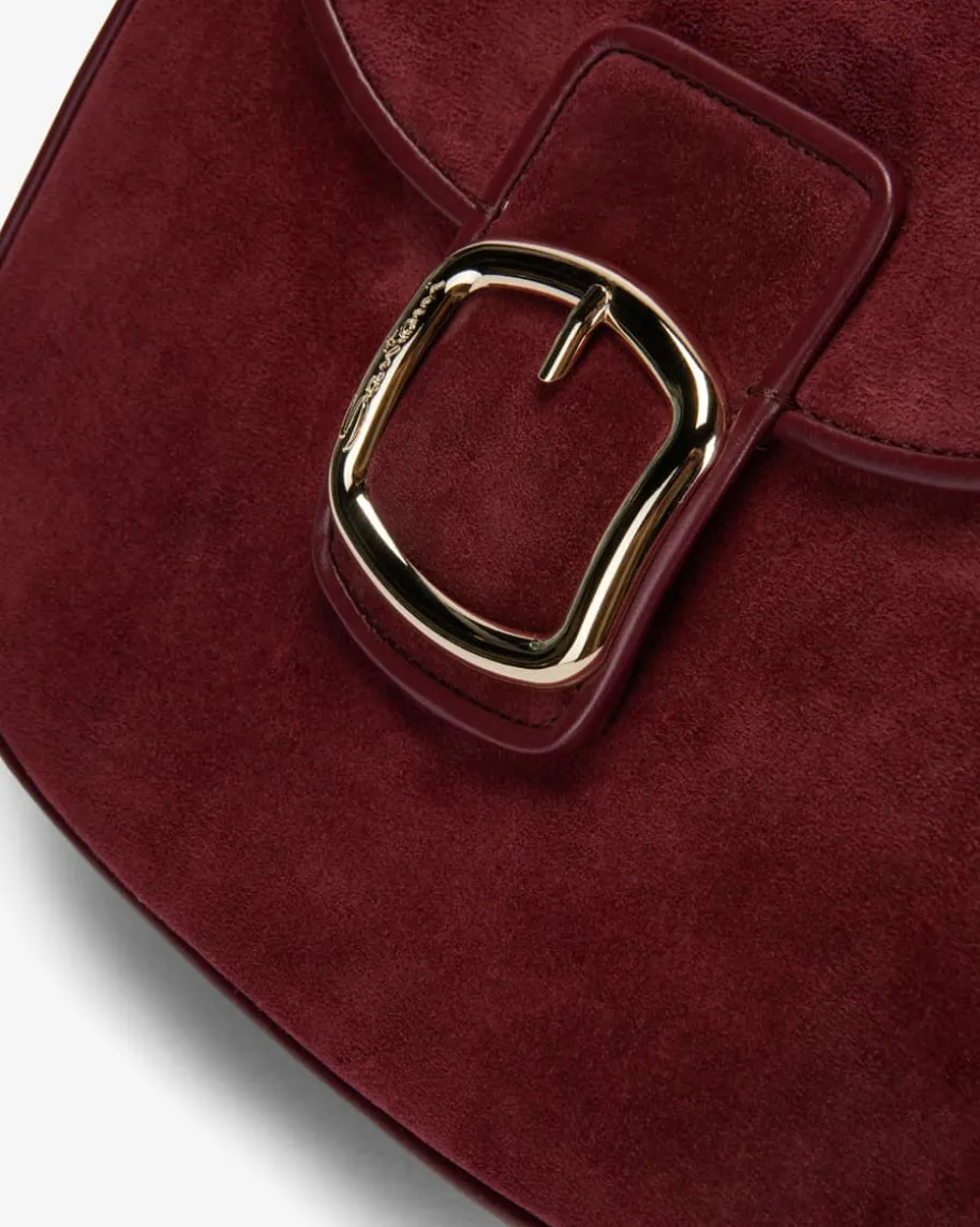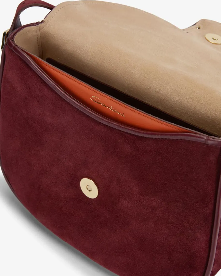 Umhängetasche für Damen von Santoni in Bordeaux. Das Modell punktet dank desgeräumigen Hauptfachs mit Funktionalität, während die hochwertige Veloursleder-Qualität einen modischen Favoriten für moderne Equestrian-Looks kreiert.