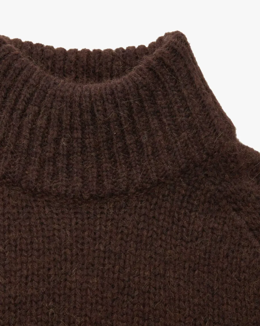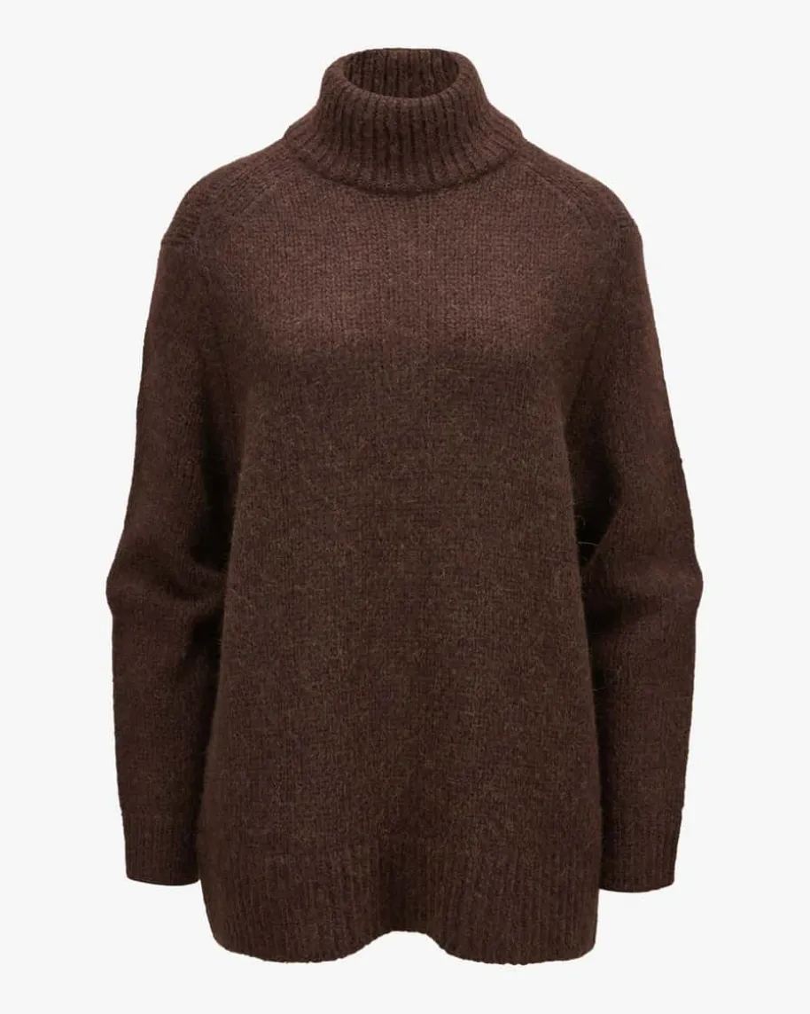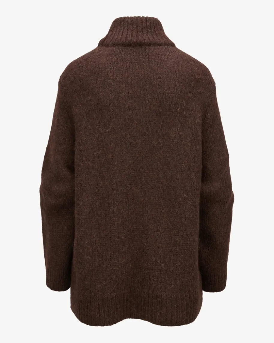 Urban Favorites Pullover für Damen von Dorothee Schumacher in Schoko. FemininePower aus Deutschland – Dorothees Looks verbinden Stärke mit verspielterEleganz. Dieses Modell erhält dank dem Woll-Mix mit Alpaka-Anteil eine weicheHaptik, während die legere Passform mit verlängerter Silhouette unddoppellagigem Stehkragen ein komfortables Herbst-Essential mit Country-Flairkreiert.