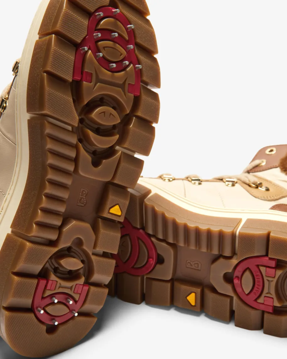 Vaduz Boots für Damen von Bogner in Sand und Cognac. Das alpine Modell avanciertzum beliebten Begleiter dank der integrierten Spikes in der Gummisohle undkomfortablem Plateau. Zudem sorgen die Ziernähte für eine modische Note, währendder Mix aus Lammfell und Glattleder sportive Akzente setzen. Die Ösen-Schnürungrundet das Design funktional ab.