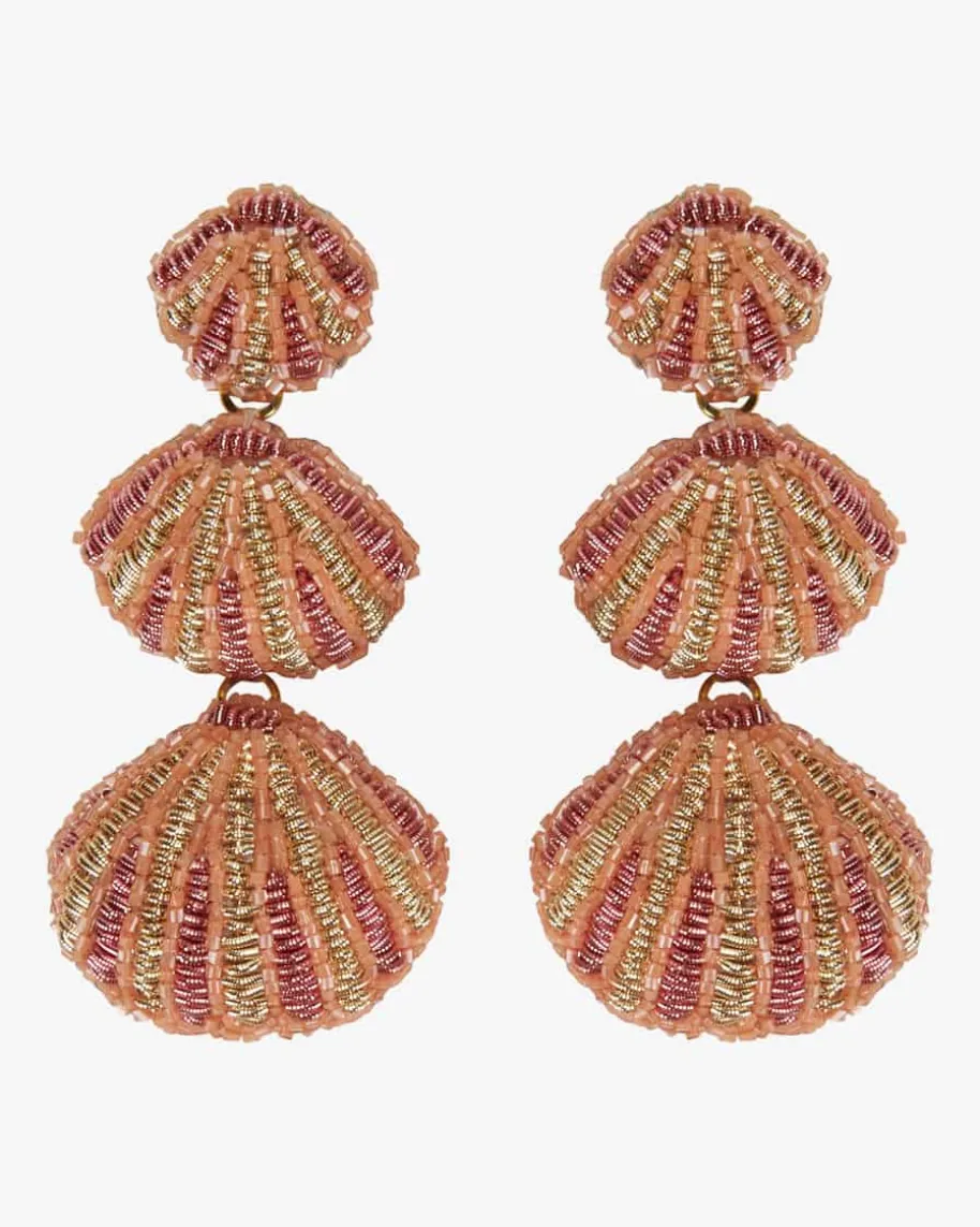 Venus Clip-Ohrringe von Olivia Dar in Lachs, Apricot und Gold. Diesesextravagante Schmuckstück avanciert dank changierender Schmuckperlen-Applikationen zu einem besonderen Eyecatcher, der jedem Outfit einen HauchRaffinesse verleiht.