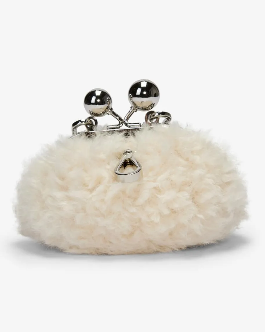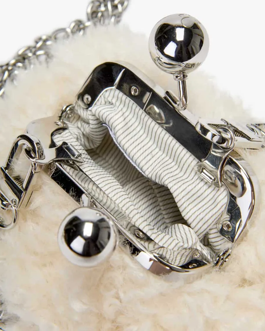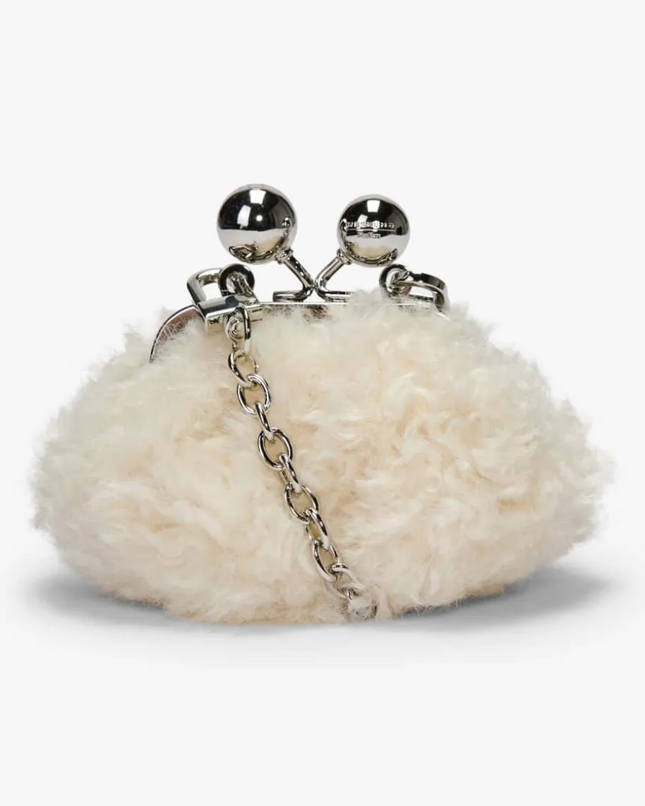 Vivi Umhängetasche für Damen von Weekend Max Mara inElfenbein und Silber. Dievielseitige und praktische Pasticcino Bag mit weicher Texturin Kunstfell-Optiklässt sich dank des Nano-Formats leicht an Taschen und Hosenbefestigen und istdamit immer zur Hand. Ein Karabiner auf der Rückseiteermöglicht zudem dieBefestigung an der größeren Tasche.