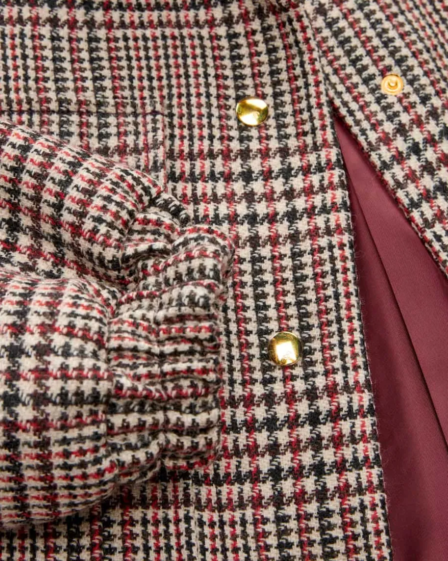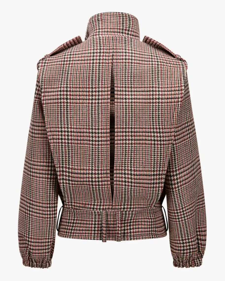 Volume Belted Woll-Blouson für Damen von Patou in Schwarz, Rot und Creme. DasPariser Label wurde 2019 neu interpretiert und verbindet feminine Mode mitCouture-Anspruch und Nachhaltigkeit. Auch dieses Modell begeistert mitraffinierter Silhouette und einem Mix aus Equestrian- und Biker-Vibes, währenddas klassische Karo-Muster und die weiche Schurwoll-Verarbeitung den modernenStyle gekonnt abrunden.