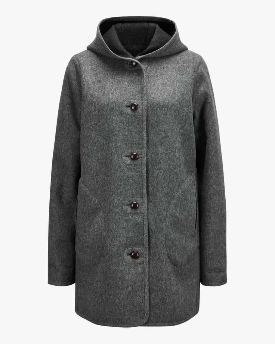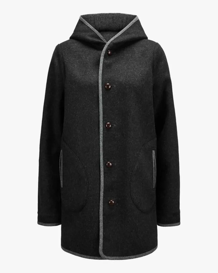Wende-Trachtenmantel für Damen von Münchner Lodenfabrik in Anthrazit undDunkelgrau. Das kurze Modell aus hochwertiger Merino-Schurwoll-Qualitäterscheint in stilvoller Aufmachung mit praktischer Wendefunktion, währendklassische Details den Trachten-Look gekonnt abrunden und somit einen zeitlosenBegleiter kreieren.
