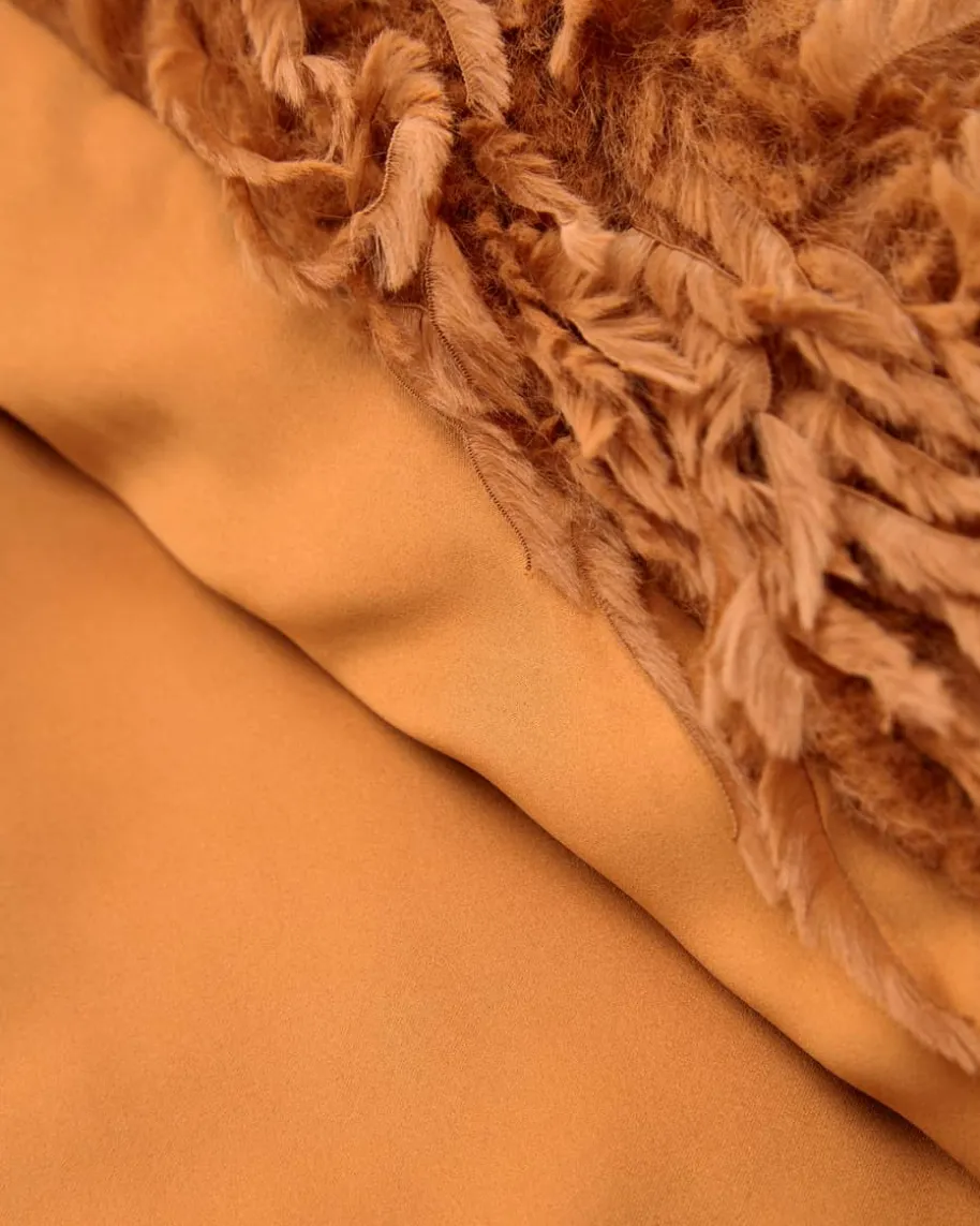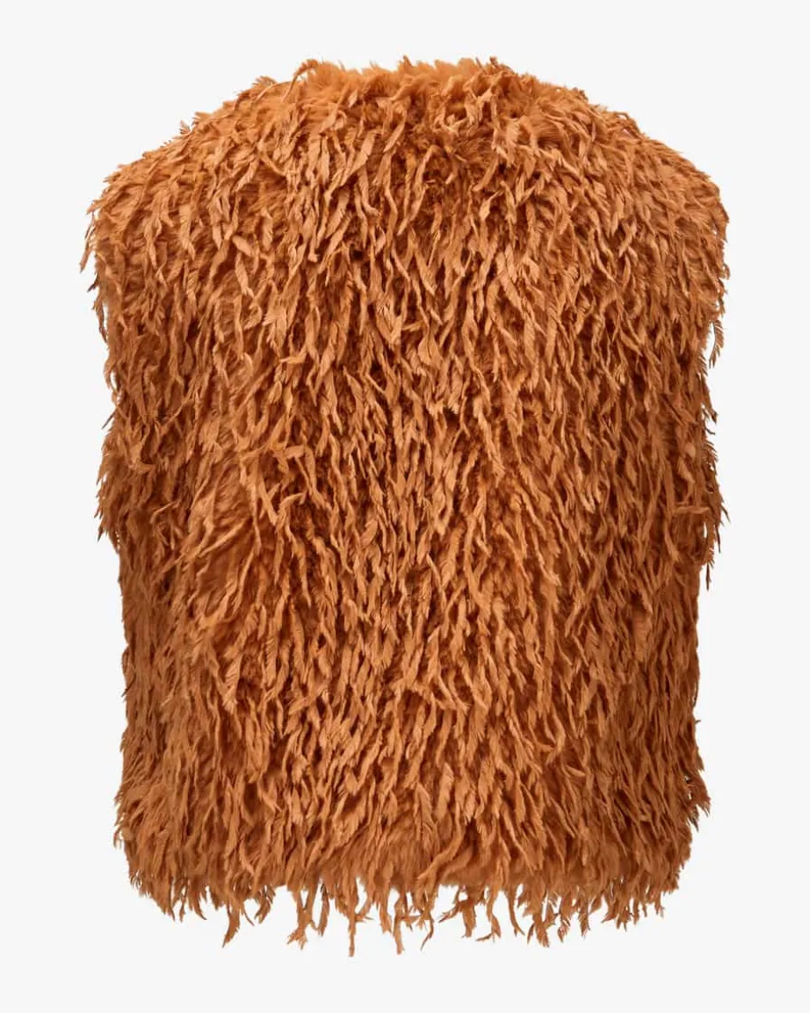 Weste für Damen von Luisa Cerano in Cognac. Das Modell präsentiert sich inextravaganter Fell-/Feder-Optik und ergänzt jedes Outfit mit stilvoller Eleganz,während ein Must-Have für modernes Layering entsteht.