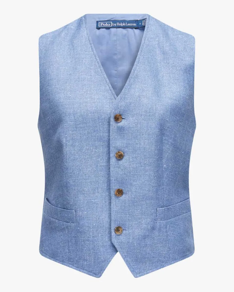 Weste für Damen von Polo Ralph Lauren in Azur. Das Modell in melierterAufmachung überzeugt mit hochwertigem Leinen-Baumwoll-Mix, während die cleaneAufmachung und klassische Details den Gesamtlook harmonisch abrunden.