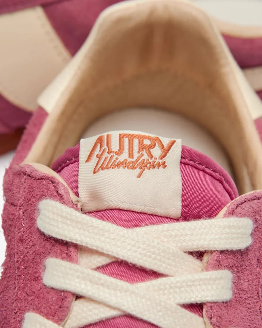 Windspin Low Sneaker für Damen von Autry in Himbeere und Creme. Das Modellpräsentiert sich in hochwertiger Veloursleder-Qualität, die sowohl haptisch undoptisch überzeugt, während das sportive Design modische Akzente setzt. Dasweiche Frottee-Innenfutter garantiert zudem einen angenehmen Tragekomfort.