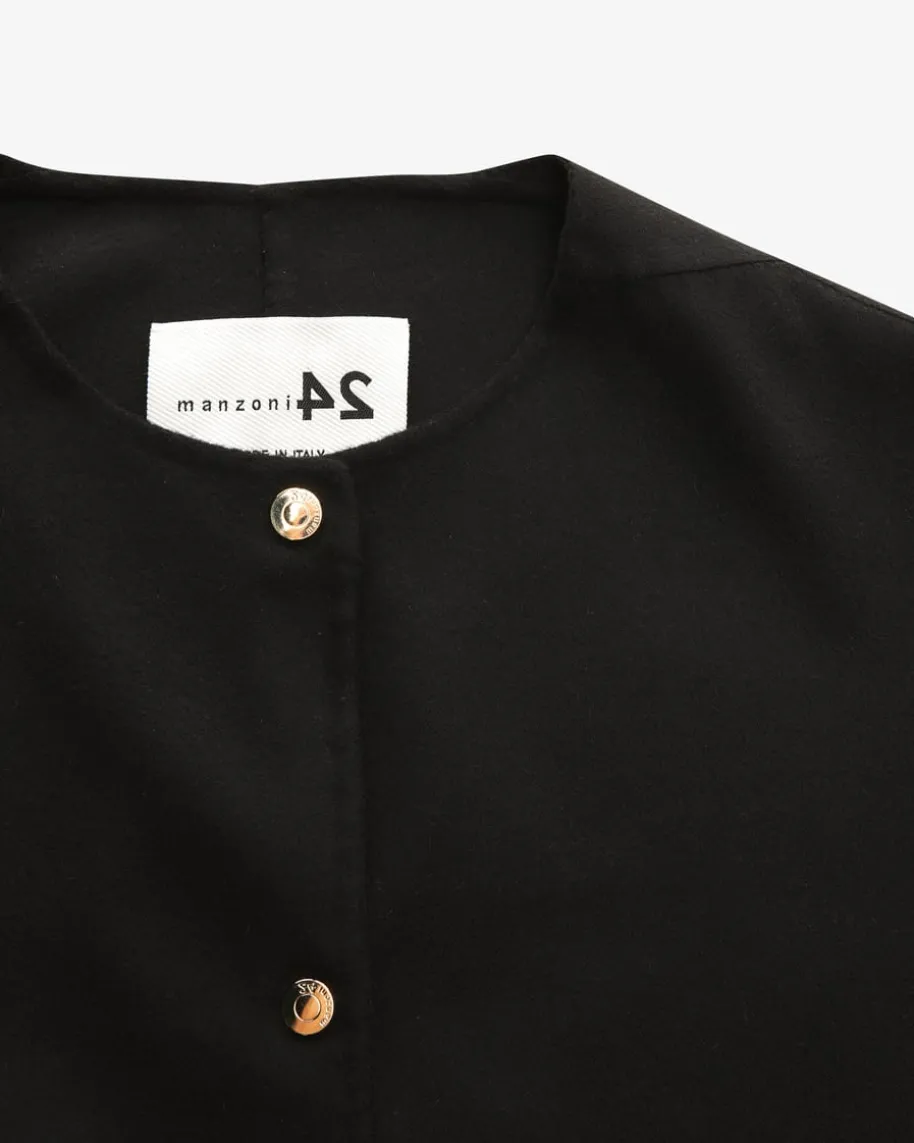 Wolljacke für Damen von Manzoni 24 in Schwarz. Das italienischeLabel besticht mit zeitloser Eleganz sowie Hochwertigkeit.Auch dieses Modell in edler Woll-Qualität überzeugt alszeitloser Favorit für stilvolle Looks, während die weitePassform sowie goldfarbene Logo-Knöpfe das Gesamtbildharmonisch vollenden.