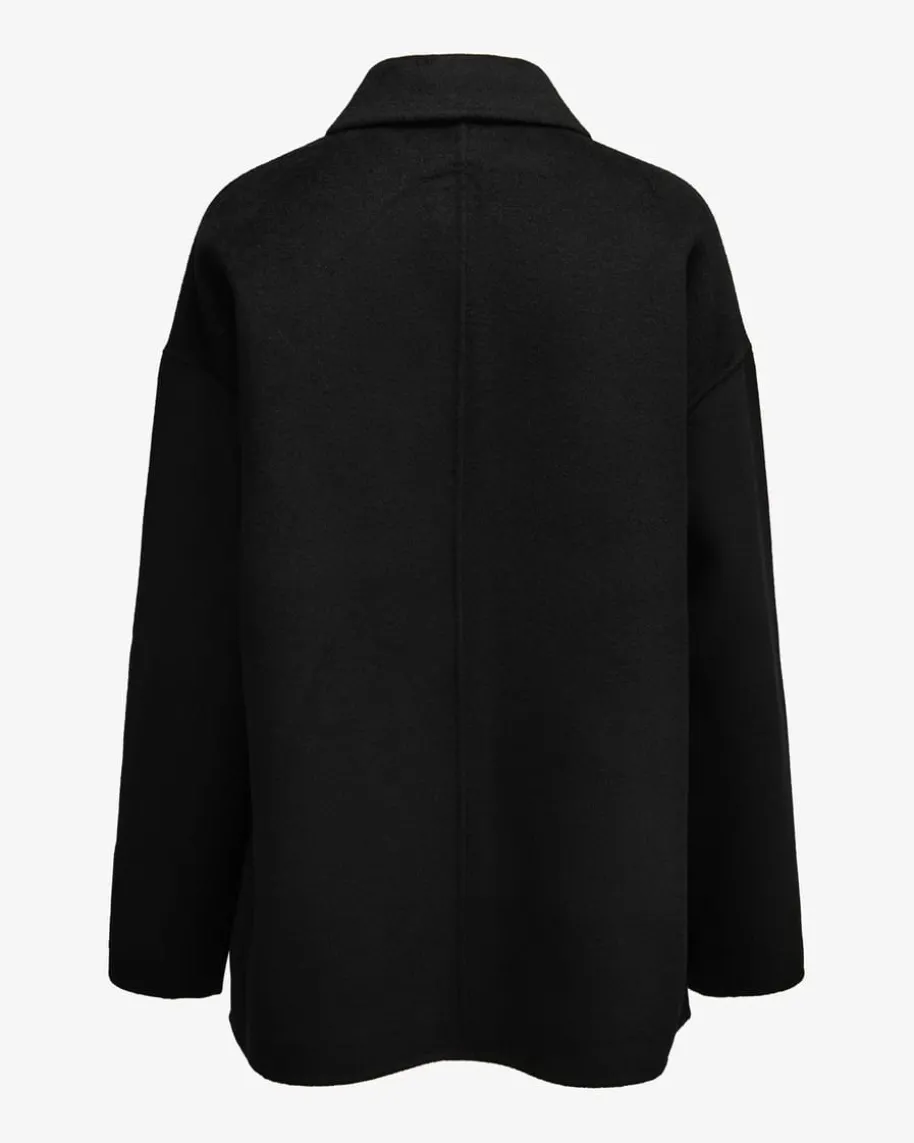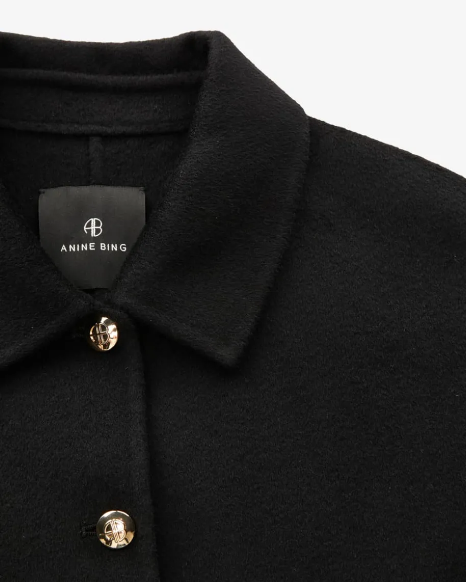 Wolljacke für Damen von Anine Bing in Schwarz. Das ungefütterte Modellpräsentiert sich mit weiter Schnittführung und markanten Seitenschlitzen,während der hochwertige Woll-Cashmere-Mix eine besonders weiche Haptik kreiert.Goldfarbene Logoknöpfe runden den stilvollen Look gekonnt ab.