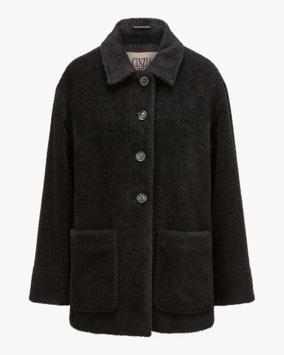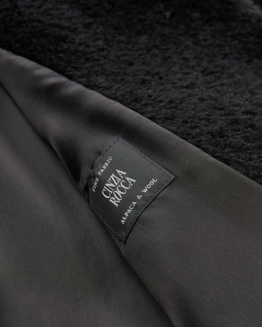 Wolljacke für Damen von Cinzia Rocca in Schwarz. Seit den 1980er-Jahren stehtCinzia Rocca Damenmode für Urban Couture Luxus. Das Modell punktet dankhochwertigem Alpakawoll-Mix sowohl mit besonderer, strukturierter Haptik alsauch edler Optik, während die weite Passform mit markanten Seitenschlitzen denmodernen Look gekonnt in Szene setzt.