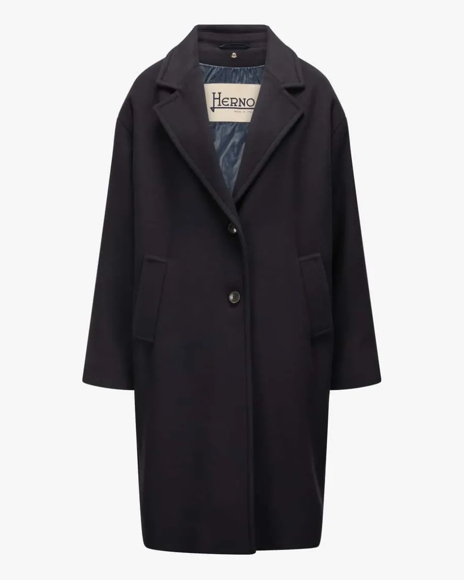 Wollmantel für Damen von Herno in Navy. Das italienische Traditionsunternehmenentwirft seit vielen Jahren luxuriöse Jacken. Mit diesem gefütterten Modell hatdas Label einen eleganten Übergangs-Begleiter mit hochwertiger Manteco-Schurwolle geschaffen, welcher dank der heraustrennbaren Stepp-Blende mitStehkragen individuelle Tragemöglichkeiten mit sportivem Touch und zusätzlicheWärme-Isolierung garantiert.