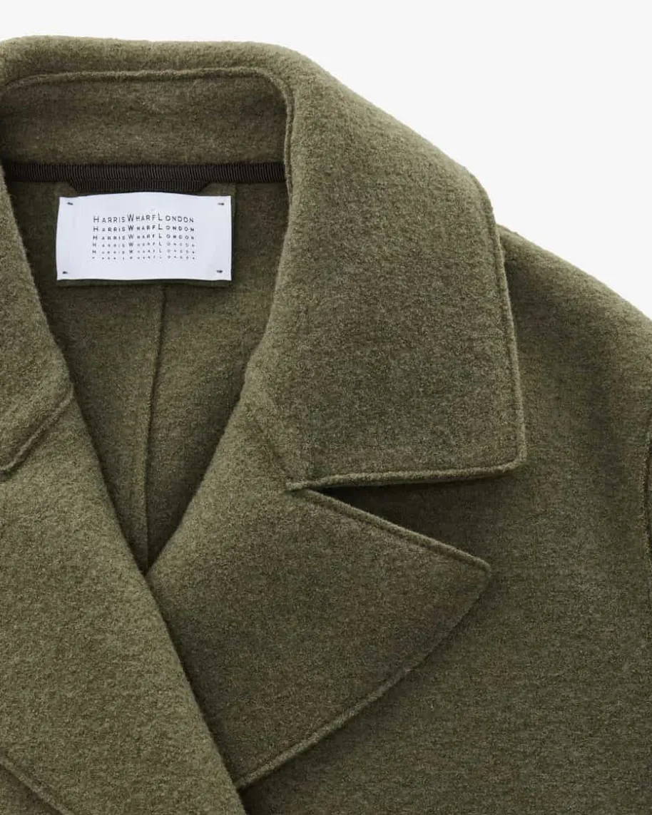 Wollmantel für Damen von Harris Wharf London in Oliv. Das Modell begeistert mitder hochwertigen Schurwoll-Qualität, während der lockere Schnitt einen Lieblingfür die Übergangszeit kreiert. Offene Kanten komplettieren das Casual Gesamtbildharmonisch.