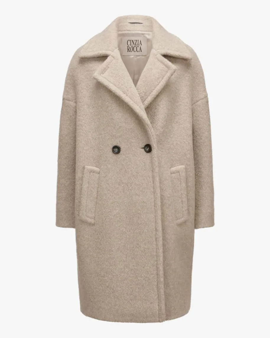 Wollmantel für Damen von Cinzia Rocca in Beige. Dank des weichen Woll-Mixbesticht das Modell mit einem angenehmen Griff, während die schlichte Aufmachungin Kombination mit klassischen Details ein harmonisches Gesamtbild kreieren.