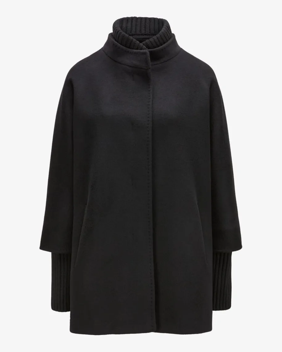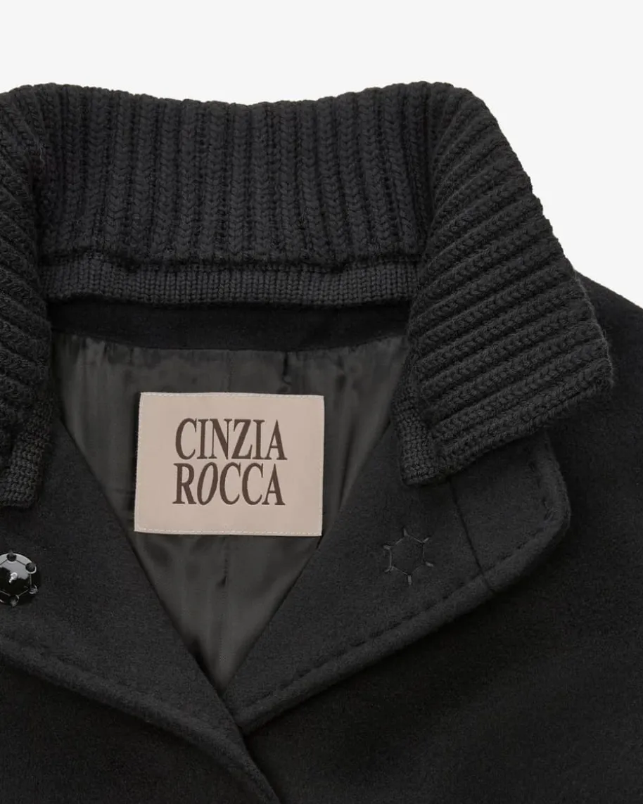 Wollmantel für Damen von Cinzia Rocca in Schwarz. Das Modell begeistert durchdie hochwertige Schurwoll-Verarbeitung sowie der legeren Passform und sorgt sofür einen modischen Übergangslook, während der Stehkragen sowie die Rippstrick-Details dem Kurzmantel einen modernen Touch verleihen.